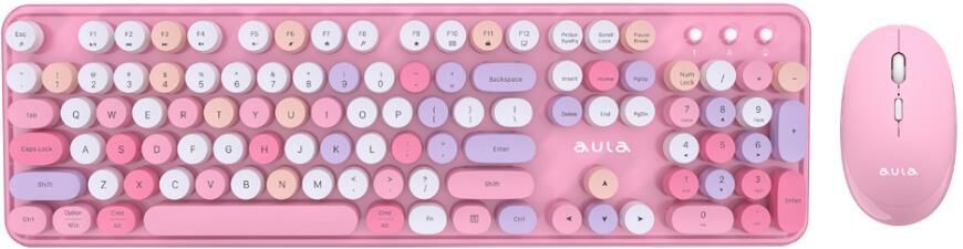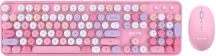 Мембранная клавиатура, Количество клавиш: 104, Мультимедия кнопки (совмещенные), Подключение: 2.4 Гц (передатчик входит в комплект), Размеры: 445*136*35 мм, разноцветные клавиши Беспроводная мышь, 800-1000-1600DPI, кол-во кнопок: 4