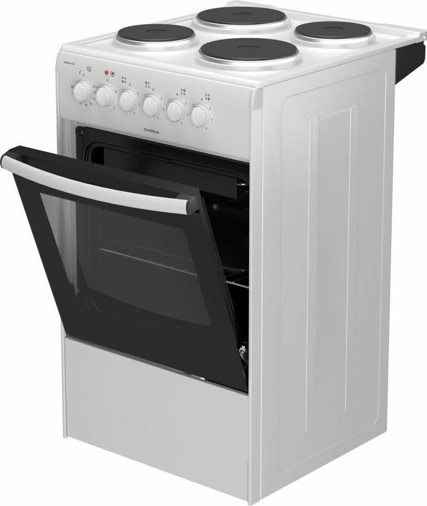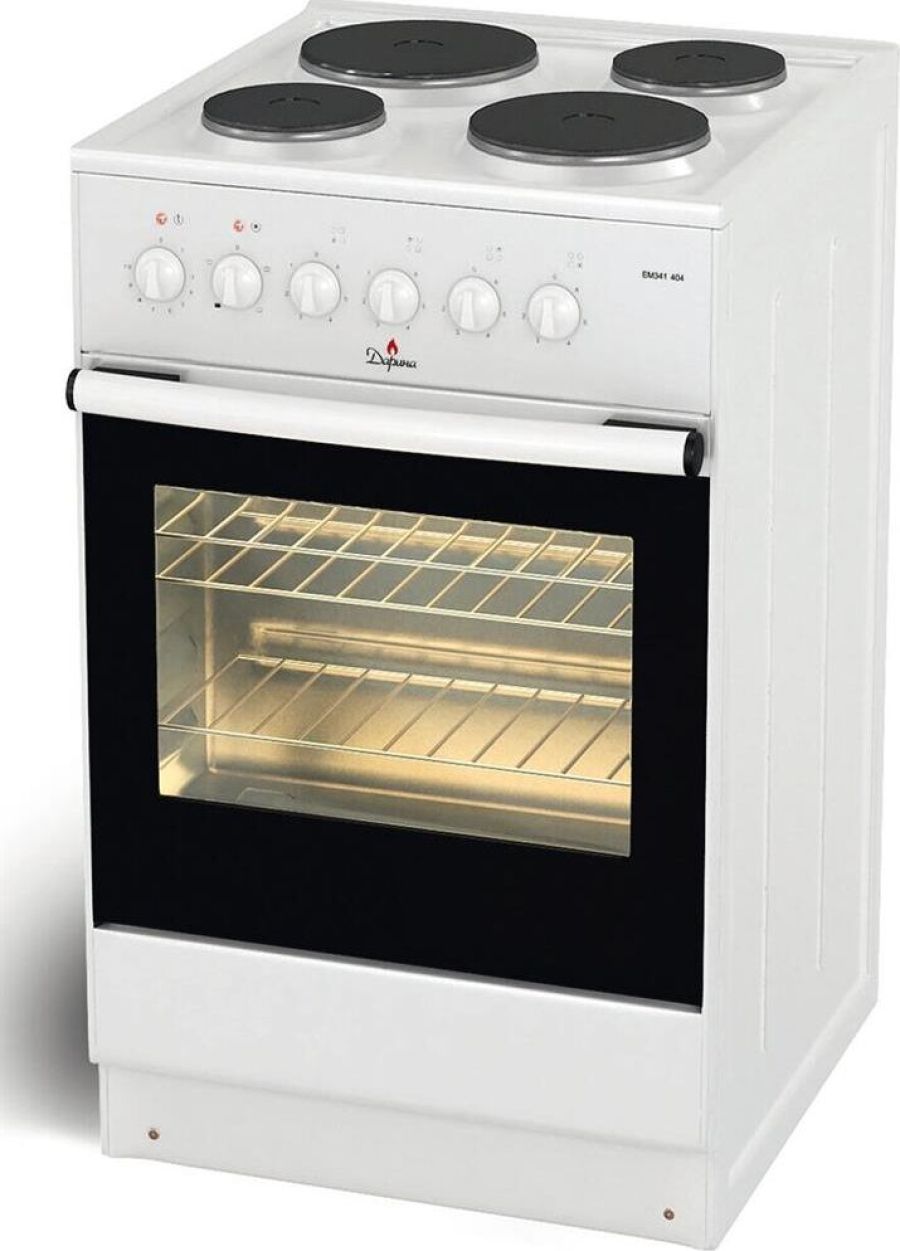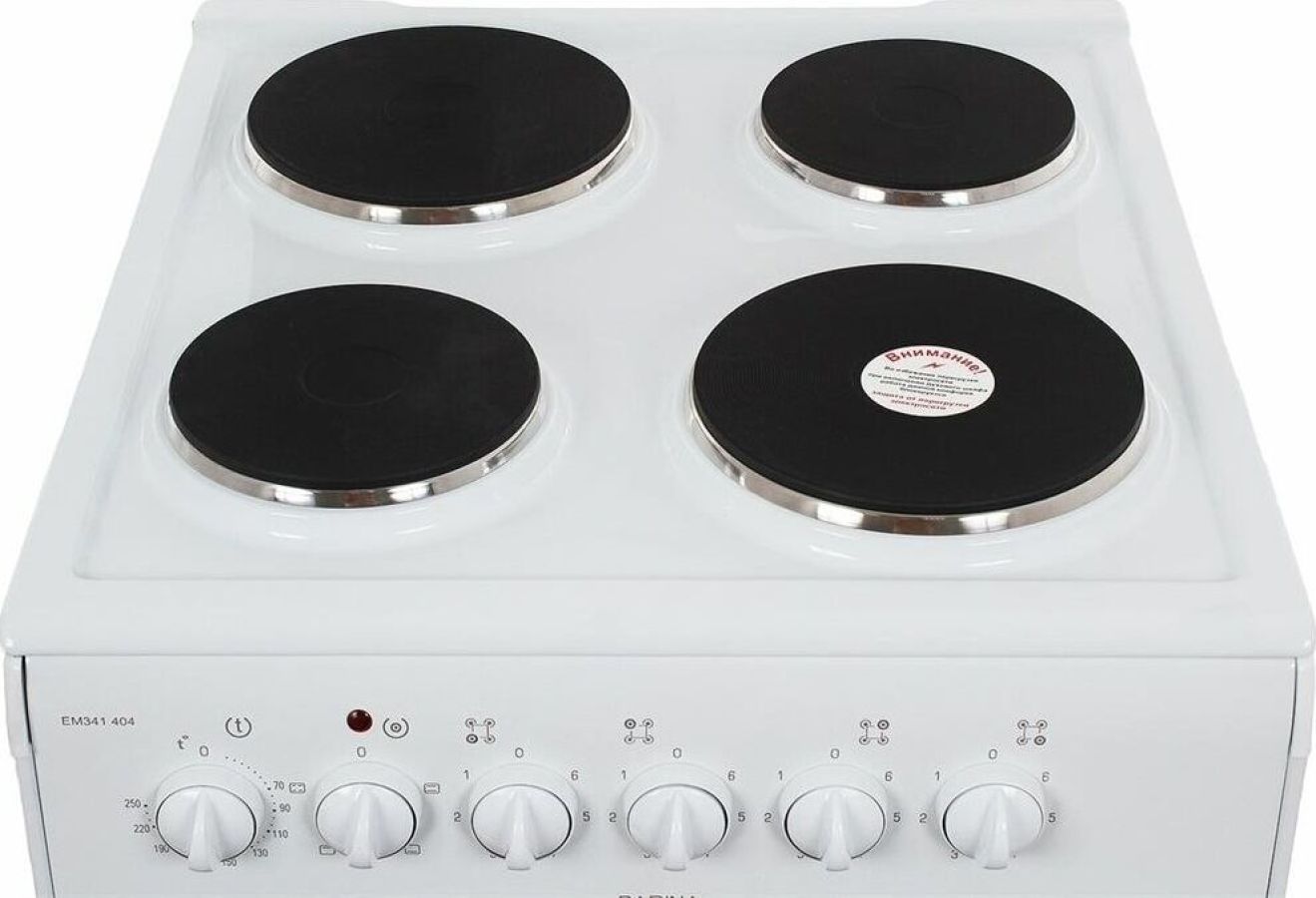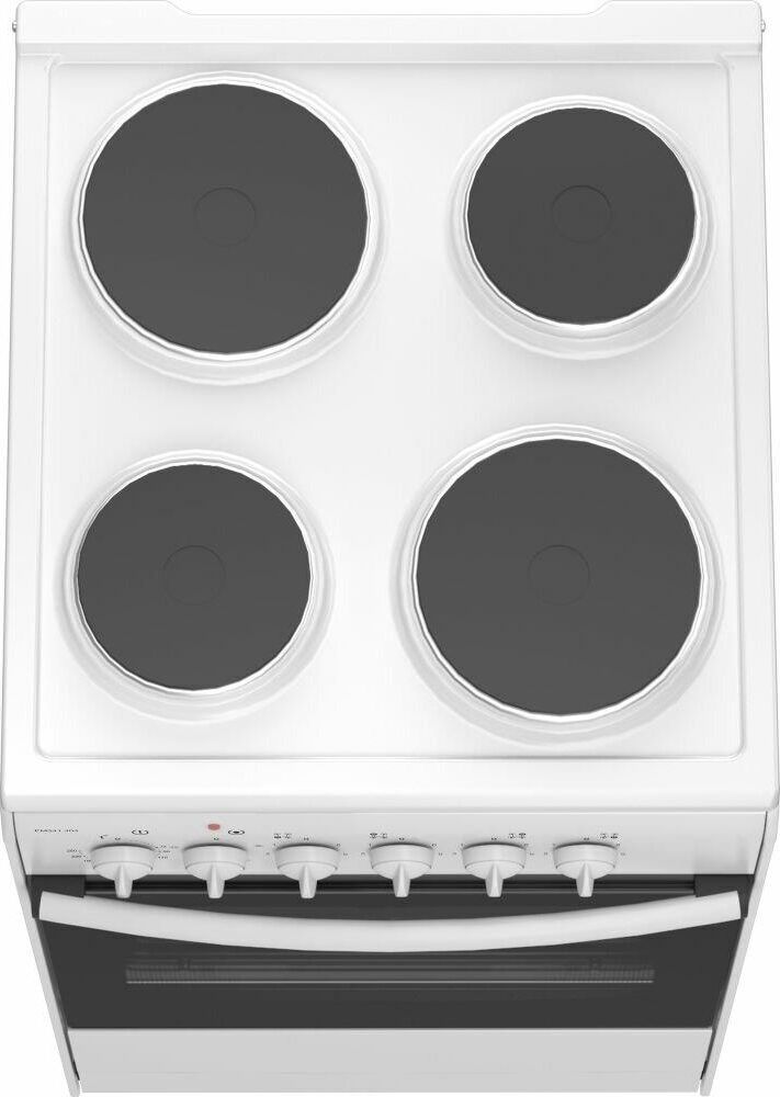 (Ш*Г*В) 50*56*85.Электрика.Цвет-белый.Материал поверхности эмаль.Кол-во конфорок 4. Терморегулятор. Поддон, противень, решетка, дверца съемная с двойным стеклом. Ножки регулировочные.