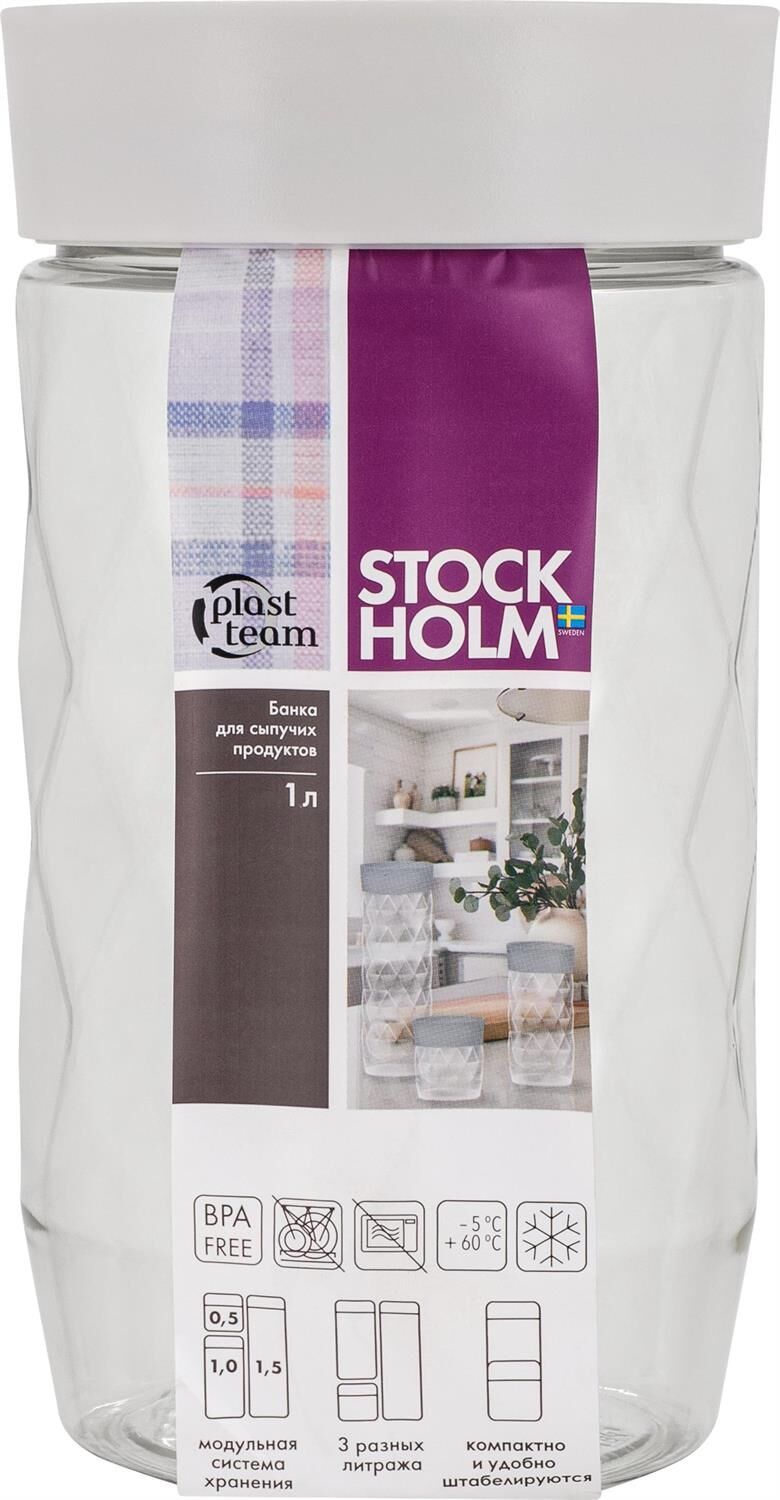 Банка для сыпучих продуктов Plast Team коллекция STOCKHOLM, пепельный жемчуг, 1л, 95х95х178 (PT1702)