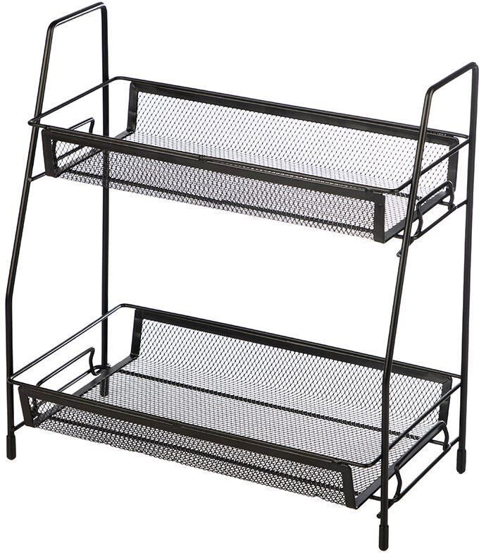 Настольная этажерка поможет сэкономить место на вашей кухне. Позволит организовать многоуровневое хранение. 2 полки разной ширины. Пластиковые ножки сберегут столешницу от царапин. Размер: 31,5*17*33 см. Материал: металл с порошковым покрытием, пластмасса.