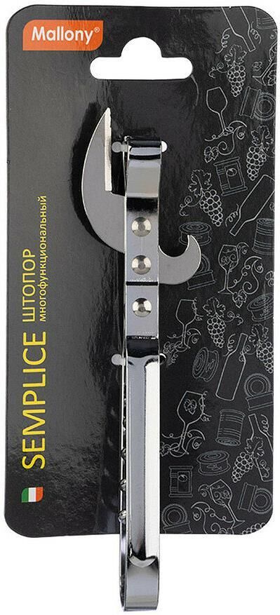 Штопор многофункциональный, SEMPLICE, размер: 14*3,7*2 см, хромированный металл Материал: хромированный металл, лезвие из 2CR14 стали. Размер: 14,5,3,5 см. Картонная подложка.