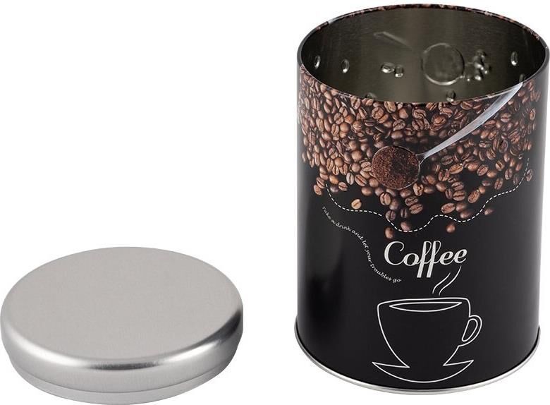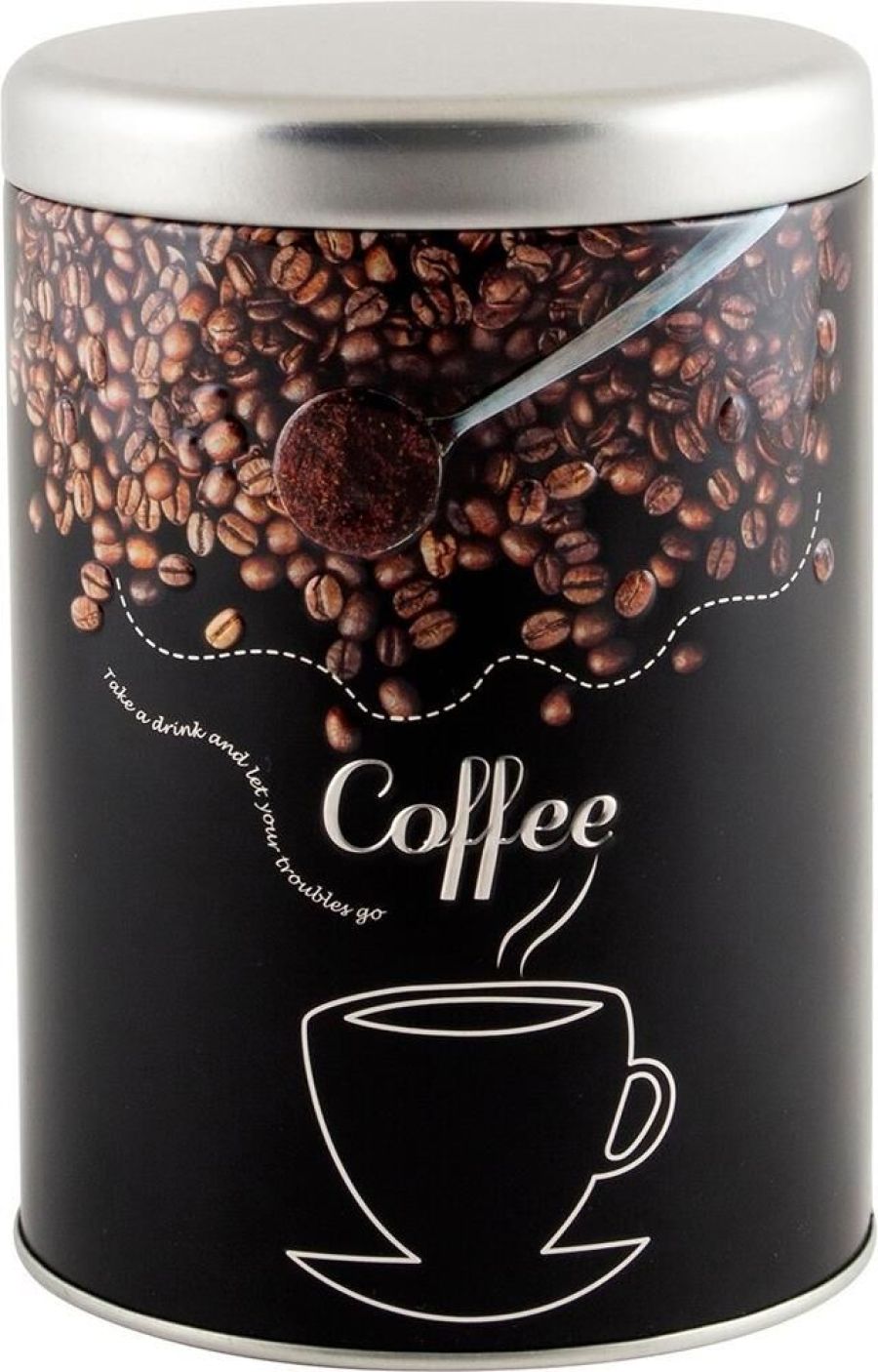 Банка с крышкой металлическая, круглая, объем 900 мл, дизайн "Кофе". Материал: жесть, толщина 0,24 мм, объем 900 мл, размер: 10,5*10,5*15 см, инд упаковка стикер.