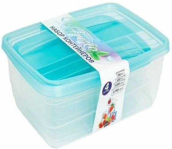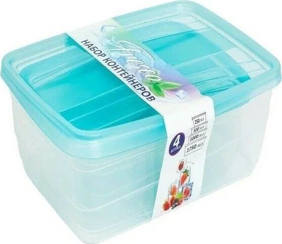 Комплектация: Контейнер с крышкой 250 мл - 1 шт, 500 мл - 1 шт, контейнер с крышкой 1000 мл - 1 шт, контейнер с крышкой 1750 мл - 1 шт.