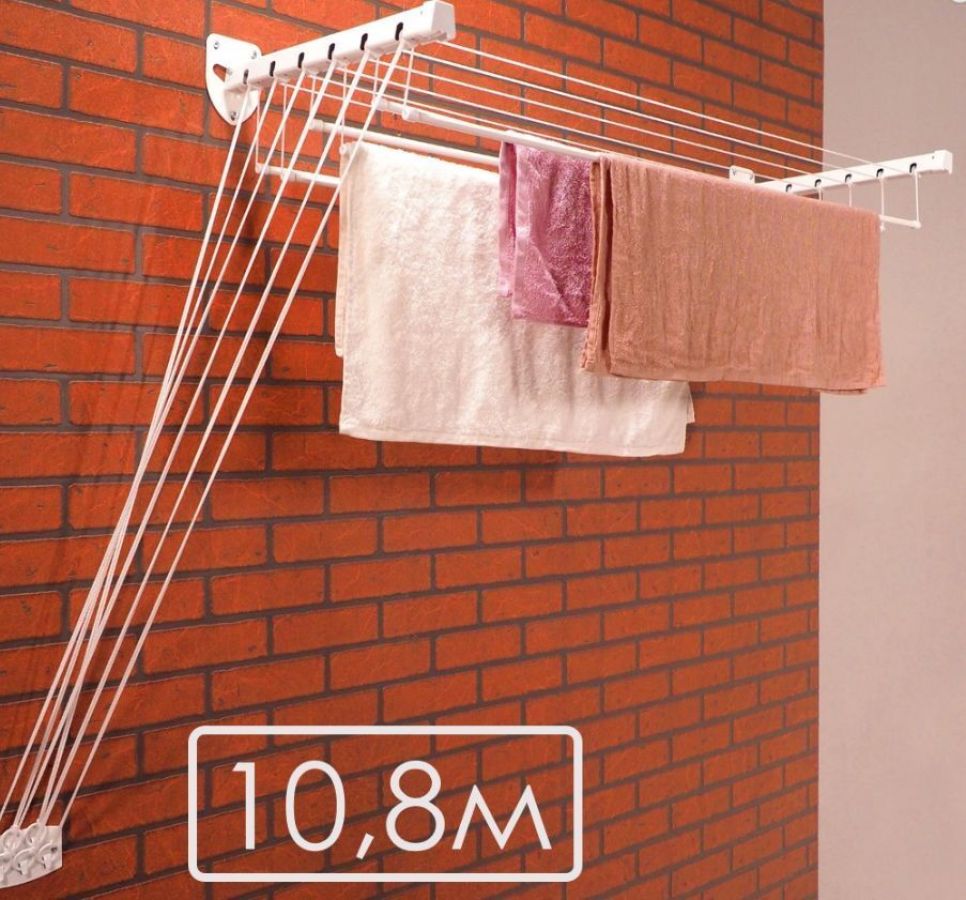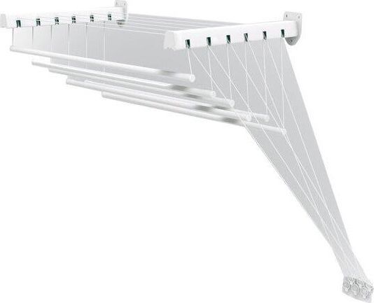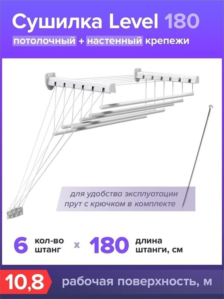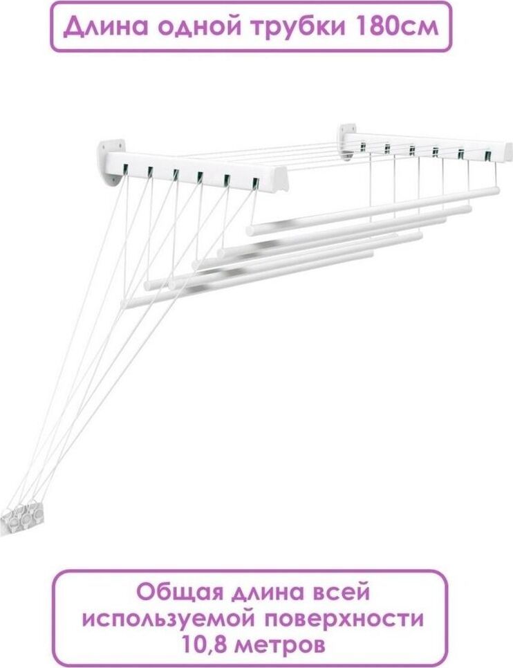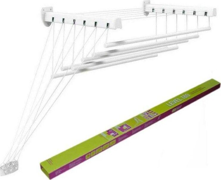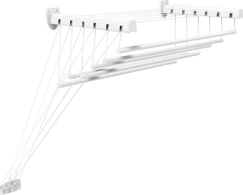 ЦВЕТ: белый. РАЗМЕР ИЗДЕЛИЯ: 430 x 1 800 x 1 350 мм. МАТЕРИАЛ: металл + полипропилен. Сушилка для белья с возможностью крепления на стену или к потолку. Оптимальна для использования в ванной комнате или на балконе. Изготовлена из нержавеющей стали с полимерным порошковым покрытием, которое защищает от воздействия влаги и предотвращает механические повреждения.
