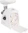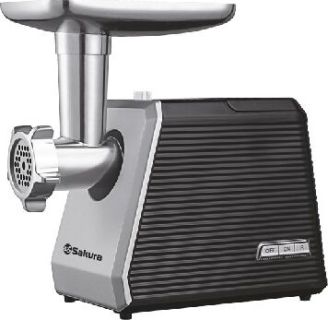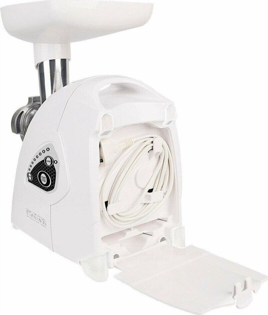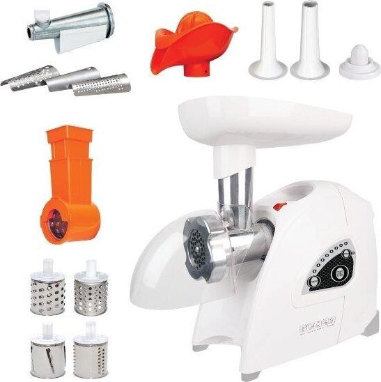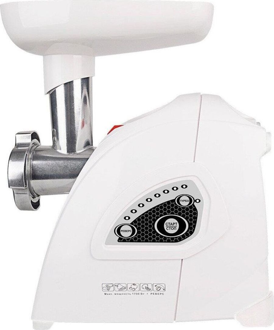 Размеры 360х169х340 Весне более 4 кг. С электронной панелью управления Мощность1700 Вт Производительность120 кг/ч Материал пластик В комплекте: 2 решетки с отверстиями диаметром 5 и 7 мм, решетка с овальными отверстиями, защитный экран от брызг, нож с саблевидной режущей кромкой, приставка для изготовления колбас и кеббе, приставка соковыжималка для цитрусовых, запасные колпачки 3шт. приставка овощерезка с 4-мя барабанами; приставка соковыжималка: (шнековая) предназначена для получения свежевыжатого сока с мякотью методом холодного отжима из томатов, ягод без косточек, твердых фруктов, овощей.Функция РЕВЕРС поможет избавиться от намотавшихся на шнек жил и пленок. Благодаря высокому качеству ножей, обеспечитвается быстрая скорость переработки фарша и существенная экономия времени