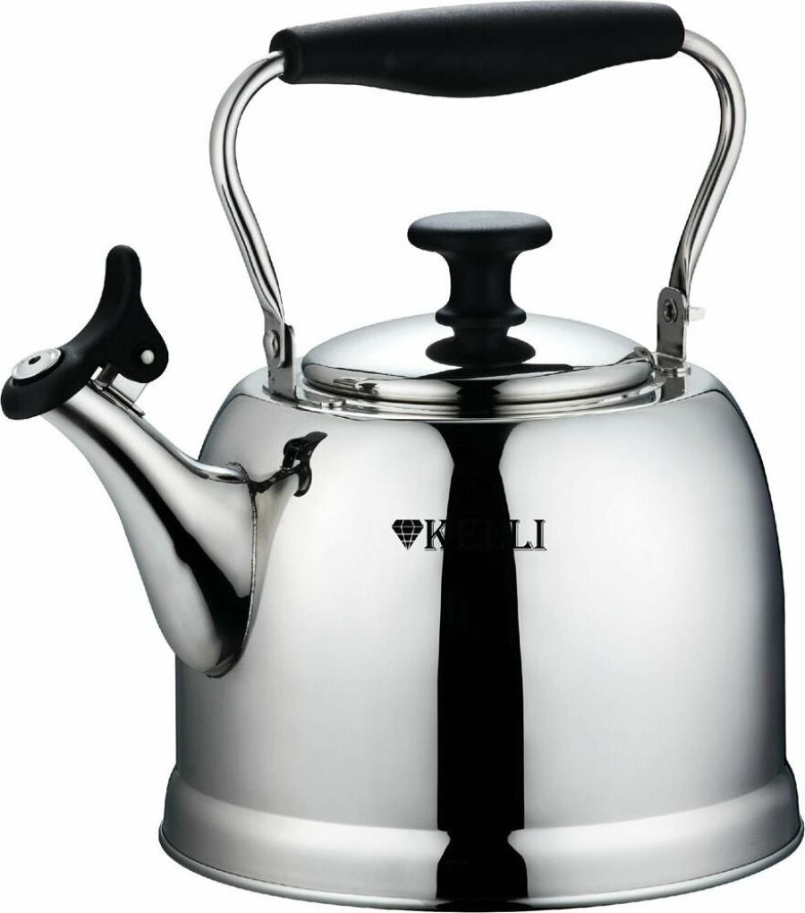 Металлический чайник со свистком Объем: 3л Высококачественная нержавеющая сталь Многослойное капсульное дно Эргономичная ручка не нагревается Свистит при закипании воды Пригоден для всех видов плит