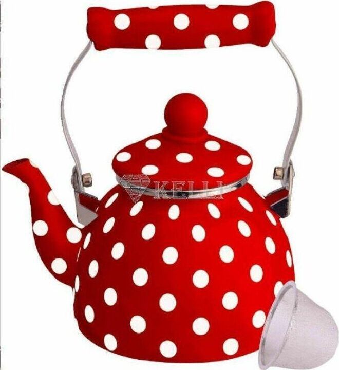 Эмалированный чайник с ситом Объем: 1,5 л 3-х слойное внутреннее и внешнее эмалированное покрытие Удобная керамическая ручка не нагревается Сито для заварки Подходит для всех видов плит Пригоден для посудомоечной машины Стильный дизайн