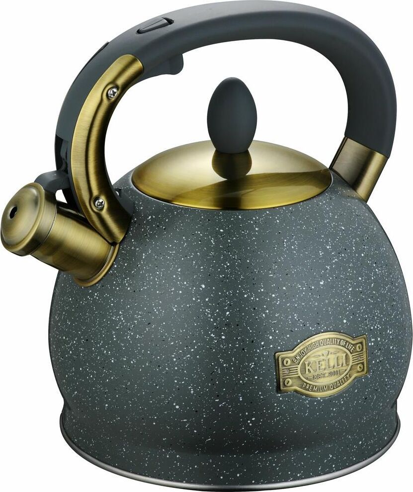 Металлический чайник со свистком Объем: 3 л. Высококачественная нержавеющая сталь. Силиконовая ручка не нагревается. Свистит при закипании. Теплоемкое капсульное дно. Подходит для всех видов плит.