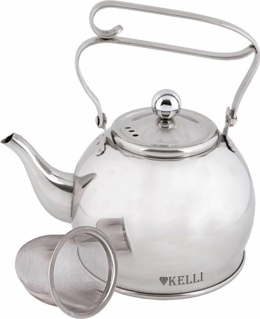 Металлический заварочный чайник 1л. Высококачественная нержавеющая сталь, теплоемкое капсульное дно, ручка не нагревается, ситечко для чая.