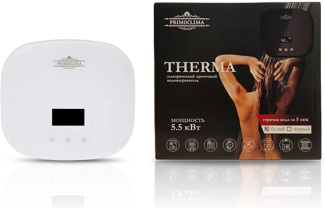 Технические характеристики Резьба для подключения воды 1/2 дюйма Мощность 5.5 кВт Напряжение сети 220(230) В Высота 230 мм Глубина 70 мм Ширина 250 мм Мах тем-ра нагрева воды 55 °С Управление сенсорное Самодиагностика да Цвет белый Защита от перегрева есть Производительность 5 л/мин Ограничение температуры нагрева есть Тип ТЭНа сухой Установка горизонтальная Способ крепления настенный Антизамерзание нет Форма прямоугольная Серия THERMA Габариты без упаковки 250х230х70 мм Вес нетто 3 кг Степень защиты от воды IPX4 IP Дисплей есть Индикация включения есть Способ подачи воды напорный Подводка нижняя