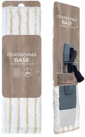 Платформа с насадкой не имеет черенка и даёт свободу выбора черенка покупателю, будь то черенок фиксированной длины или телескопический. Диаметр крепления 21мм. Платформа укомплектована сменной насадкой Base весом 50 грамм для моделей швабр Uno и Base, а также для любых прочих швабр, имеющих платформу 40х10см. Насадка из микрофибры не оставляет грязи и разводов, не царапает покрытие пола. Её можно стирать в стиральной машинке, она долговечна и экологична.