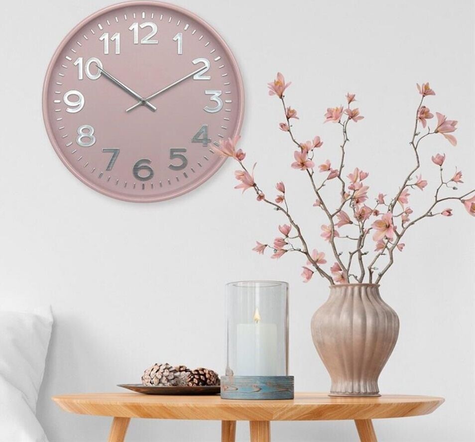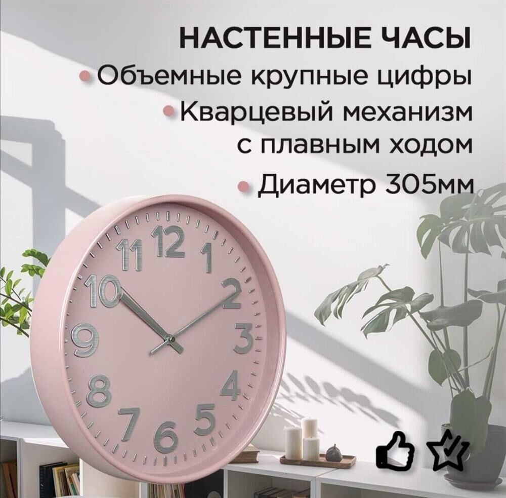 Часы настенные пластиковые, модель 78773784, размер 305*305*50 мм, стекло минеральное, пластиковый обод глянцевый, рельефные цифры с тиснением фольгой под серебро.