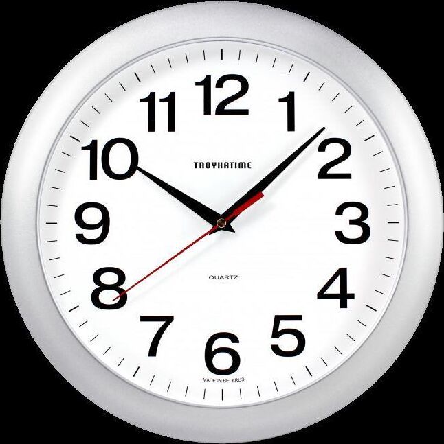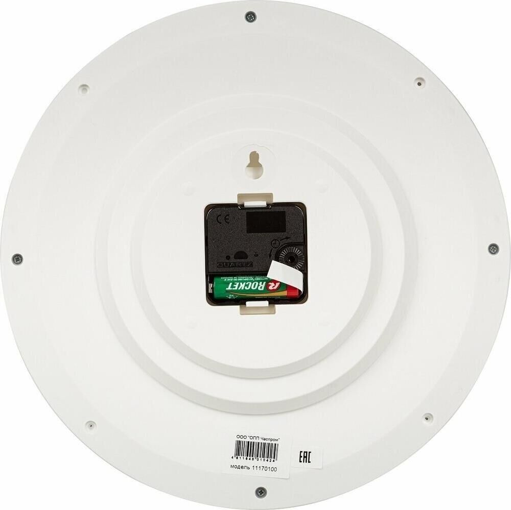 Часы настенные, модель 11170100, диаметр 290 мм, стекло пластиковое, пластиковый обод, цвет-серебро.