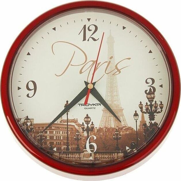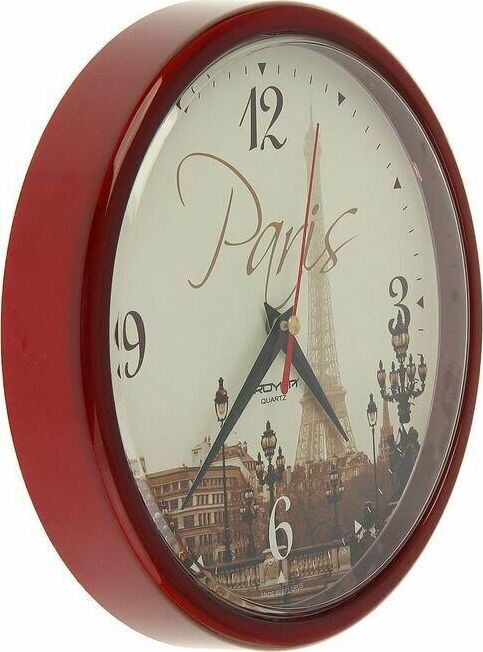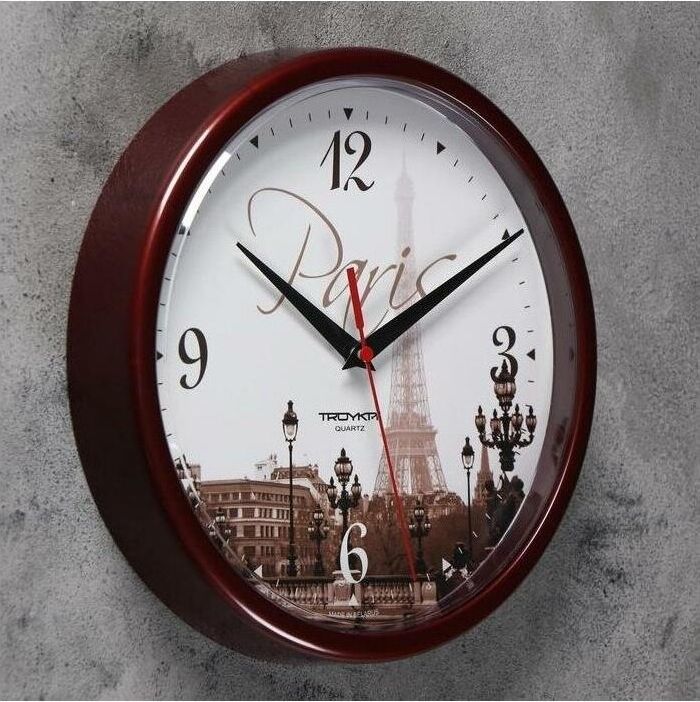 Категория: настенные, Тип механизма: кварцевый, Материал корпуса: пластик, Точный размер корпуса: 230х230х40 мм, Форма корпуса: круглые, Цвет корпуса: коричневый, Цвет циферблата: картинка, Циферблат: стрелочный, Цифры: арабские, Ход: плавный.