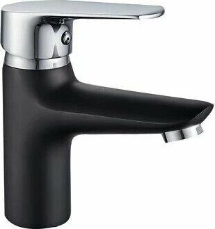 Смеситель для умывальника - Цвет: черный - Картридж: Ø35 мм - Аэратор: пластиковый, съемный - Излив: короткий В комплекте: гибкая подводка 1/2" дюйма (350 мм), монтажный комплект - гайка (цинк)