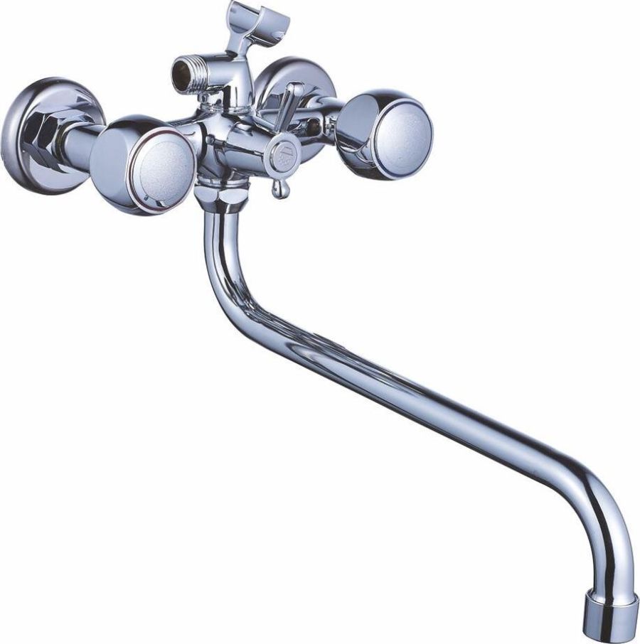 Смеситель универсальный с круглым изливом и переключателем для душа - Покрытие корпууса: хром - Кран-букса латунная с керамическими пластинами (угол поворота 90 градусов) - Шланг длина 1,5 м - С поворотнымизливом 300 мм - В комплекте с лейкой