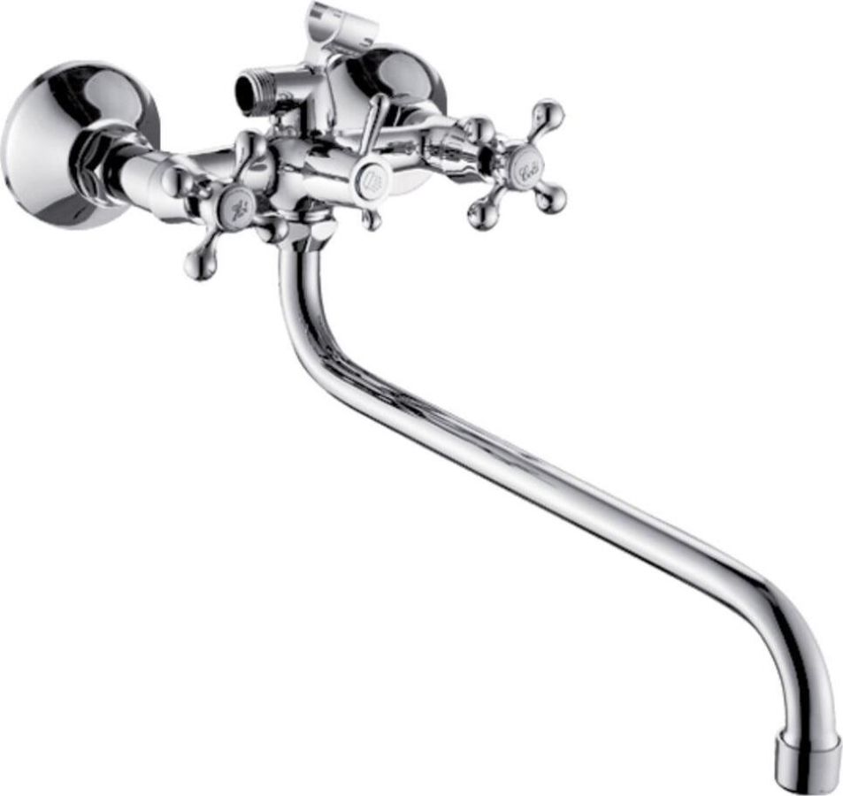 Смеситель универсальный с круглым изливом и переключателем для душа - Покрытие корпуса: хром - Кран-букса латунная с керамическими пластинами (угол поворота-90 градусов) - Шланг: длина 1,5 м - С поворотным изливом 300 мм - В комплекте с лейкой