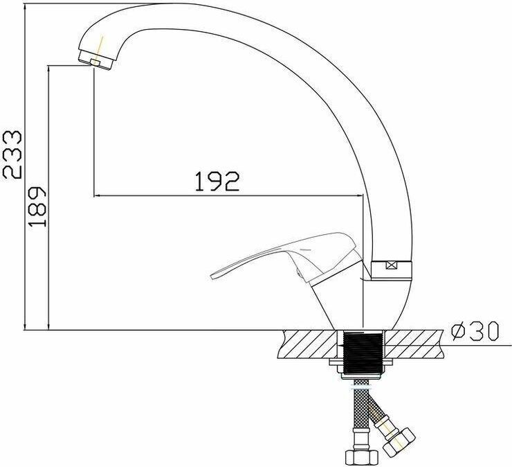 Смеситель для кухни Gota Rocio изготовлен из качественных материалов, никель-хромовое покрытие соответствует стандартам качества, обеспечивает стойкость и зеркальный блеск в течении всего срока службы. Высокий поворотный излив на 360 градусов, высота излива 233 мм. Съемный пластиковый аэратор гарантирует ровный поток воды. Картридж d 35 мм обеспечивает плавный ход ручки смесителя. Цвет - хром Смеситель для кухни Gota Rocio комплектуется гибкой подводкой 1/2" дюйма (350мм), монтажный комплект - гайка Аэратор наружняя резьба 24мм Картридж 35мм Излив высота 233мм