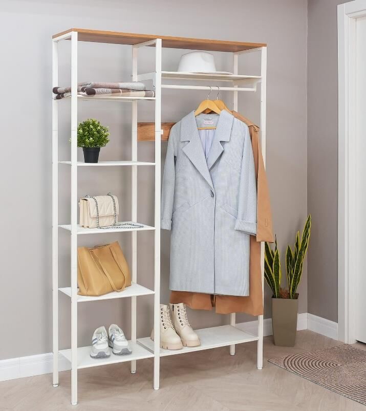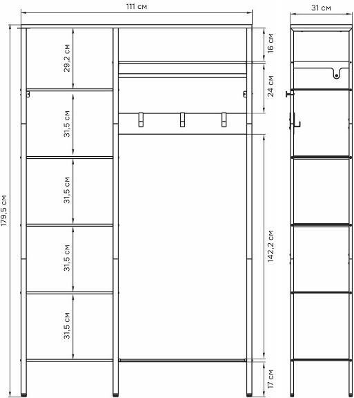 Гардеробная система «ТОРОНТО 48Л» — это функциональное и стильное решение для организации пространства в вашем доме. Она поможет вам максимально использовать свободное место и удобно хранить одежду, обувь и аксессуары. Габариты изделия: 111х31х179,5 см.; Габариты упаковки: 1145х327х108 мм.; Нагрузка на полку ПВЛ - 8 кг.; Нагрузка на полку ЛДСП - 10 кг.; Нагрузка на крючок - 5 кг.; Нагрузка на вешало - 20 кг.