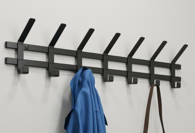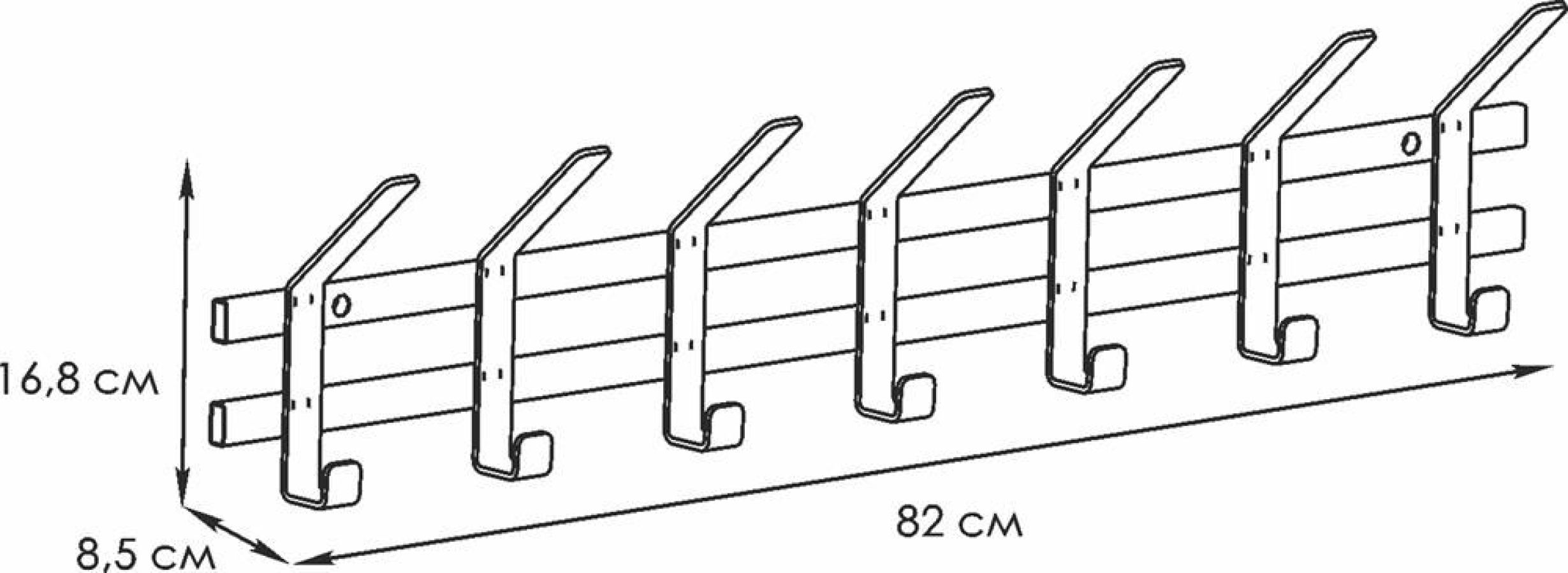 Назначение Для размещения одежды. Материал сталь, полимерное покрытие. Индивидуальная упаковка 84,2 х 17,4 х 9,1 см. Габариты (Д*Ш*В) 82 х 8,5 х 16,8 см. Максимальная нагрузка, кг до 7 кг на крючок. Уход Протереть влажной тряпочкой с мыльным средством. Температура применения, °C от 0 °C до +30 °C.