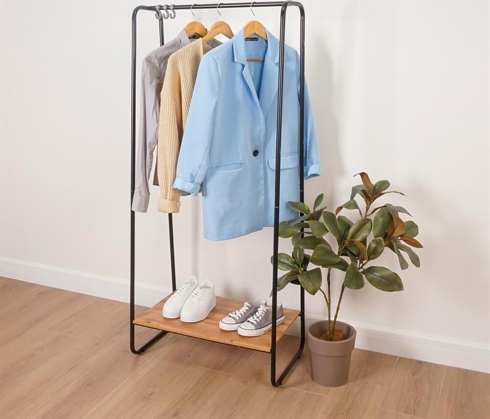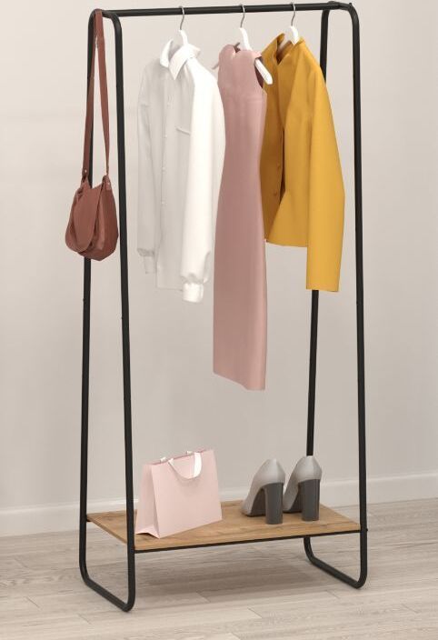 Назначение Для хранения вещей во внутренних помещениях. Материал сталь, порошково-полимерное покрытие, пластик, ЛДСП, фетр. Габариты (Д*Ш*В) 69 х 38,5 х 147 см. Максимальная нагрузка, кг На полку - 10 кг На перекладину - 20 кг. Уход Протереть влажной тряпочкой с мыльным средством. Температура применения, °C от 0 °C до +30 °C.