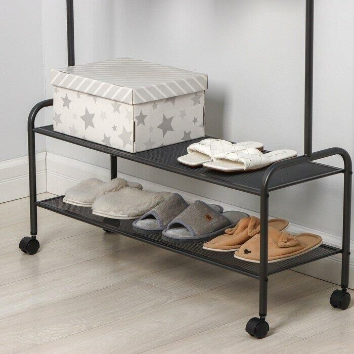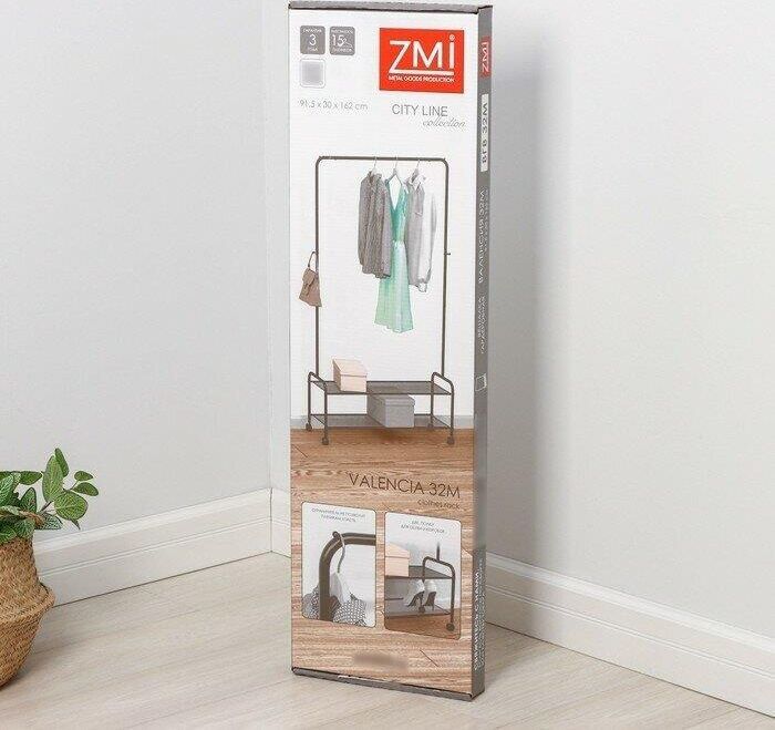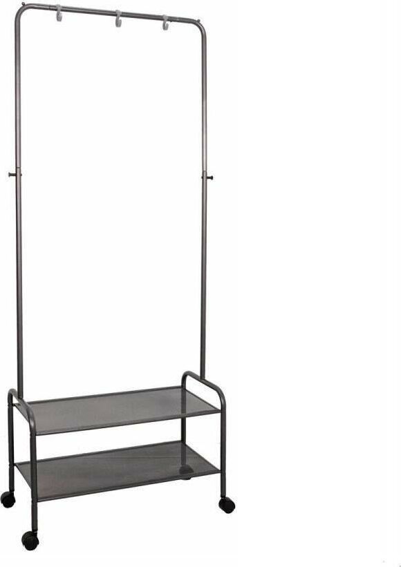 Комплектация: металлик, Вешалка гардеробная "Валенсия 22М" с двумя полками, на колесах