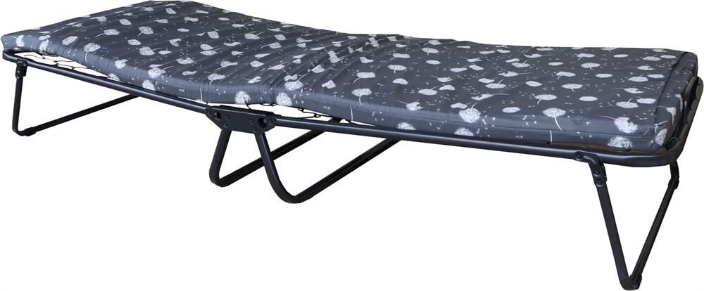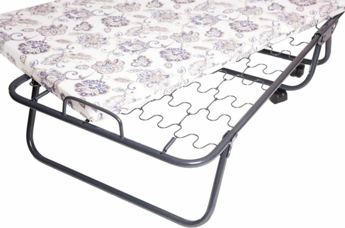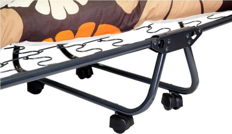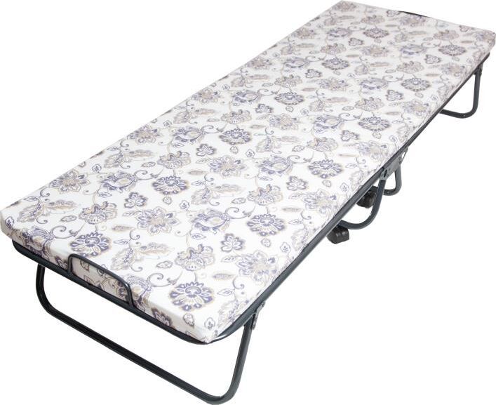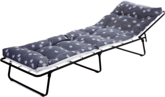 Габаритные размеры в разложенном положении (длина х ширина х высота), мм: 1900х700х397. Габаритные размеры в сложенном положении (длина х ширина х высота), мм: 700x340х1135. Максимальная нагрузка, кг : 100. Каркас: основание и опоры - труба стальная ф22*1,4 опоры центральные ф25х1,0; опоры крайние ф19х1,0; полимерное покрытие пружина-змейка – 15шт. пружина – 6шт. опоры мебельные – 4шт. Матрас: ткань 45% п/э – 55% хлопок, плотность 108 – 111 г/м2, наполнитель матраса поролон листовой (толщиной – 50мм) Размер упаковки (длина х ширина х высота), мм: 727х261х1120. Вид упаковки: термоусадочная пленка, картон гофрированный. Вес изделия: нетто, кг - 13,0.