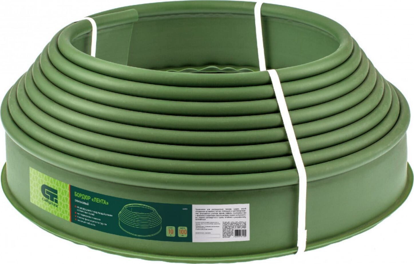 Полиэтиленовый бордюр Сибртех «Лента» 64553, 10 х 100 см предназначен для оформления отдельных участков озелененных территорий. Гибкому ограждению можно придать любую форму, что позволяет подчеркнуть контуры цветников и грядок, защитить грунтовые дорожки от размывания, обозначить границы приствольных кругов деревьев. Преимущества Бордюр изготовлен из атмосферостойкого пластика, поэтому невосприимчив к влаге и перепадам температуры. Износостойкость — ограждение долгое время сохраняет форму и цвет.Легкость установки — предварительная подготовка территории и монтаж крепежей не требуются.Простота транспортировки — бордюр компактно упакован и весит всего 1,7 кг.