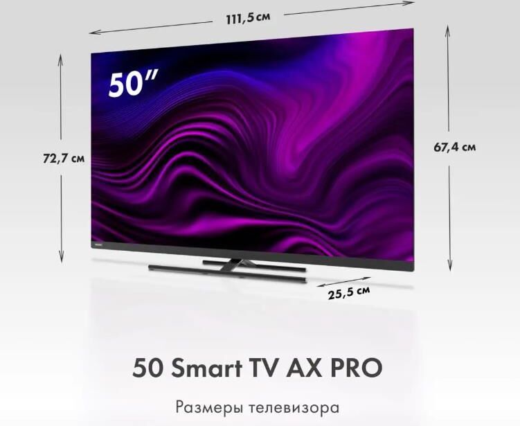 Цвет серебристый Операционная система Android Версия операционной системы Android 11 Гарантийный срок 1 год Модель 50 Smart TV AX Pro Диагональ 50" Тип матрицы QLED Разрешение экрана 3840x2160 Формат экрана 16:9 Частота обновления 60 Гц Яркость 320 кд/кв.м Контрастность 5000:1 Разрешение HD 4K UHD Технологии улучшения изображения HDR10; MEMC; Цифровое шумоподавление Потребляемая мощность 160 Вт Беспроводные интерфейсы Bluetooth; Wi-Fi Интерфейс RJ45; CI/CI+ Количество портов USB 2 шт. Количество портов HDMI 4 шт. Дополнительные разъемы Jack 3,5 мм; RJ-45; композитный Акустическая система Тип звуковой системы Dolby Atmos Мощность акустики 24 Вт Коммуникации и мультимедиа Bluetooth; LAN; Wi-Fi Дополнительная информация Размер VESA 200x200 Доп. опции телевизора Time Shift; Воспроизведение с USB носителя; HDMI CEC Цифровой ТВ-тюнер DVB-C; DVB-T; DVB-S2 Тюнер DVB-T2 да Встроенный DVD нет