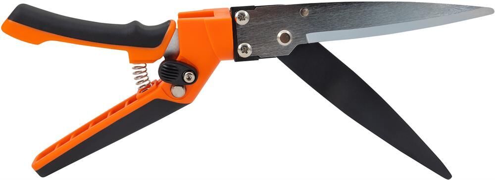 Садовые ножницы Материал: углеродистая сталь 65Mn, хромированное и тефлоновое покрытие лезвий Толщина лезвий- 2,5 мм Материал ручки - РР + TPR. Ножницы для травы поворотные на 360° Фиксатор пластиковый. Ручки с противоскользящим покрытием. Вес 320 г. Размер: 33,5 см. Макс. диаметр среза: 12 мм
