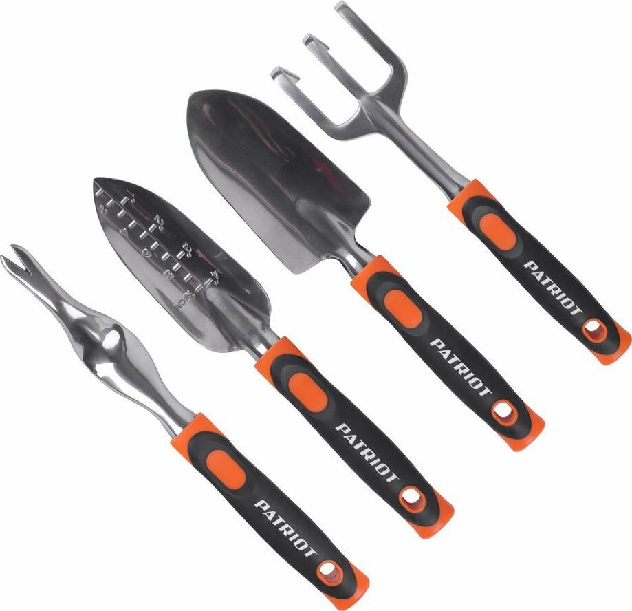 Набор садового инструмента Patriot GTP 4 с алюминиевым цельнолитым корпусом предназначен для ухода за растительностью на клумбах, грядках, в парниках и теплицах. Лопатки: 2 шт. Корнеудалитель. Вилка посадочная.