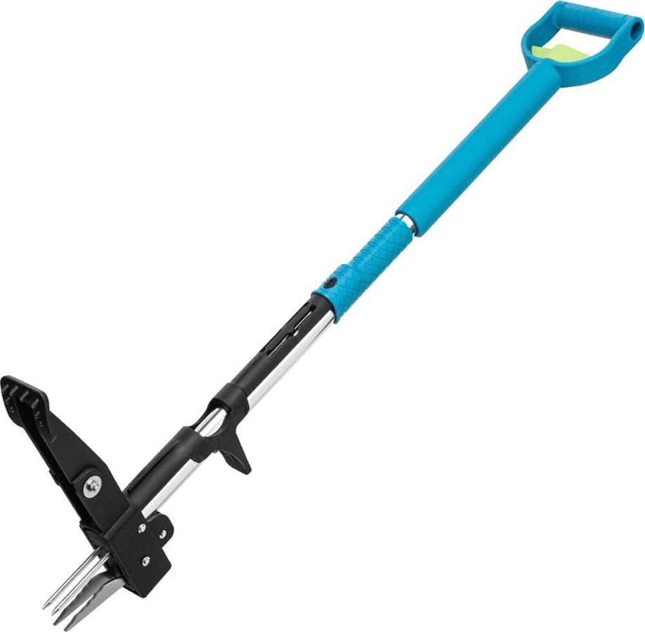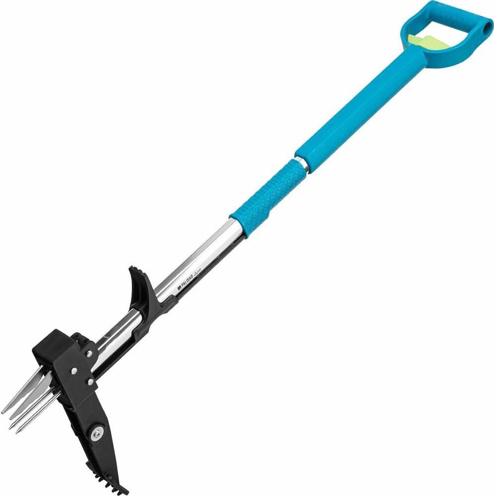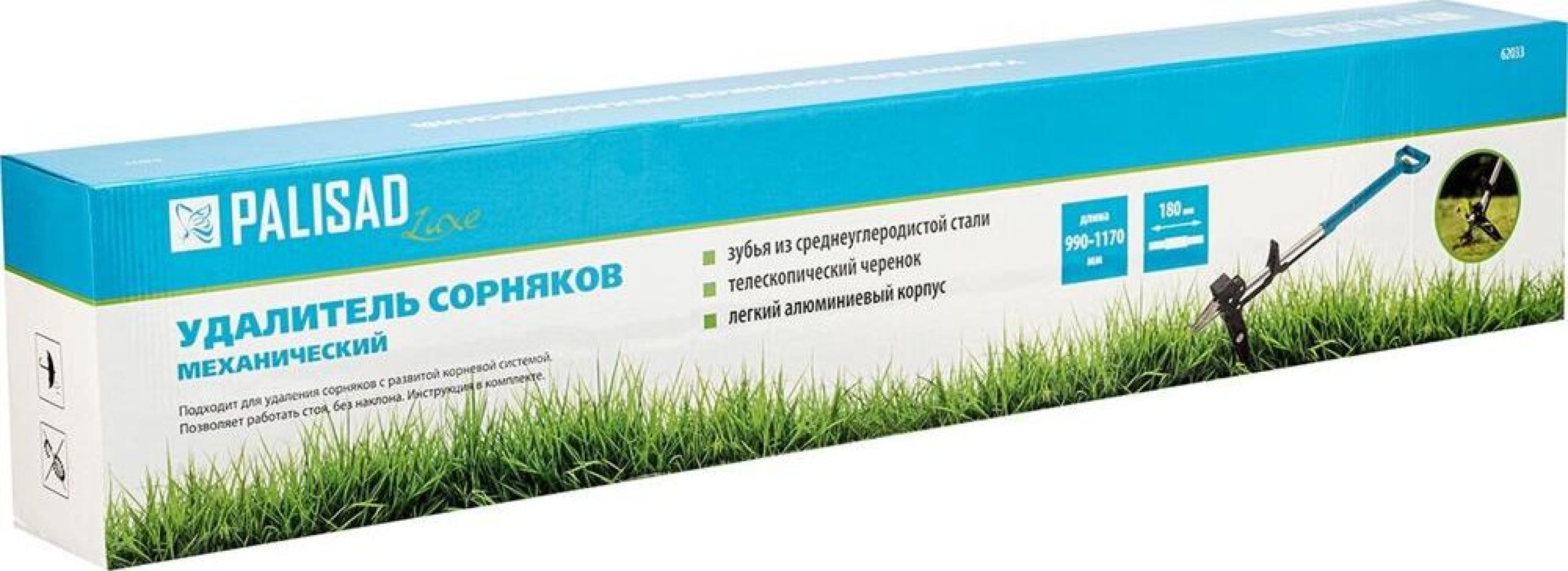 Телескопический удалитель сорняков Palisad LUXE 62033, 990-1170 мм, с алюминиевым корпусом, позволяет избавиться от сорняков с мощной корневой системой на огороде или в саду. Он пригодится дачникам при необходимости приведения участка в порядок. Удалитель легко выдергивает сорняки вместе с корнем, не повреждая при этом культурные растения. Диаметр ножей 6 мм. Профиль зубьев круглый. Размер зубьев 83 мм. Материал черенка алюминиевый сплав. Количество зубьев 4. Материал рабочей части нержавеющая сталь. Общая длина инструмента 990 мм. Ширина рабочей части 44 мм. Высота рабочей части 83 мм. Материал рукоятки полипропилен. Комплектация инструмент, упаковка. Минимальная длина 990 мм. Максимальная длина 1170 мм.