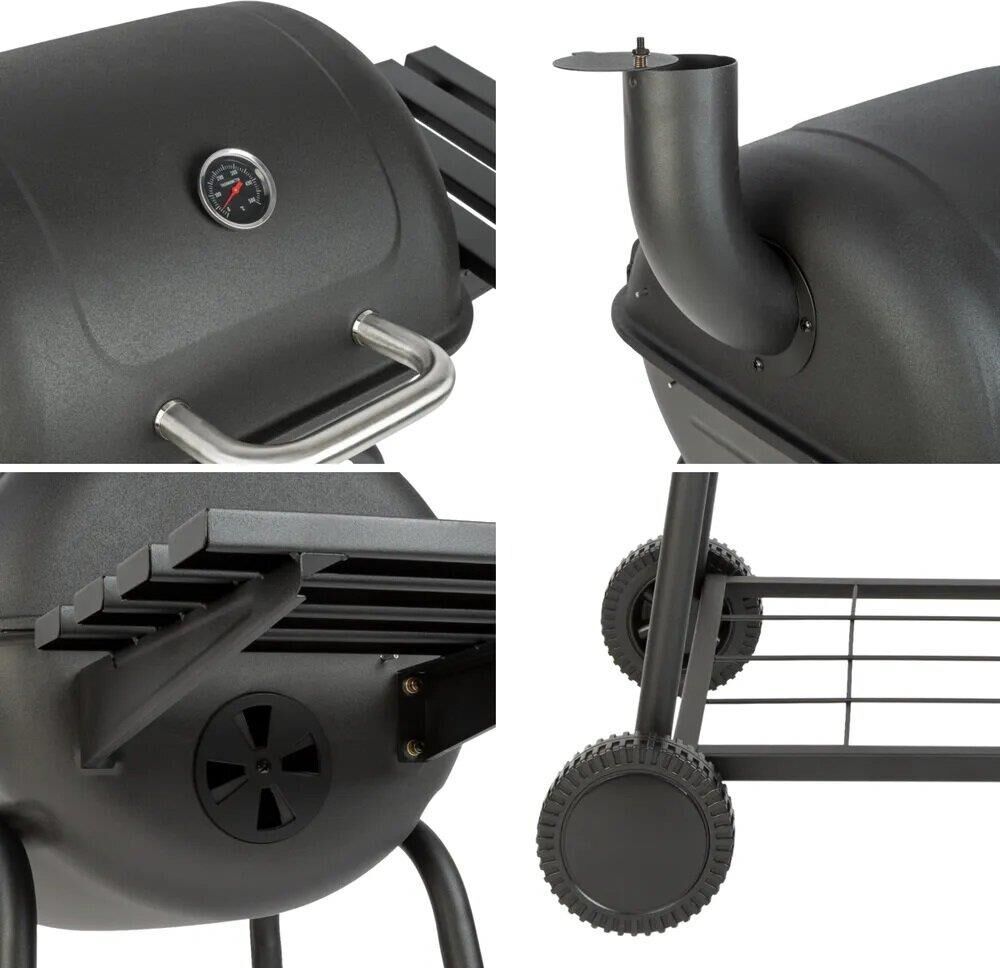 Гриль Green Glade 11070 – это замечательное решение для отдыха на природе в кругу семьи или друзей. Благодаря наличию полочек можно удобно расположить все вспомогательные элементы и продукты для приготовления еды. Данная модель имеет два колеса для передвижения конструкции с места на место. На крышке есть термостат, который помогает контролировать температуру приготовления блюда. Дополнительным преимуществом является то, что гриль можно использовать в качестве коптильни, для которой не требуется никакого дополнительного оборудования. • Размер: 81x49x108 см • Вес нетто: 11,7 кг • Толщина стальных стенок: 0,7 мм • Покрытие: жаростойкая эмаль • Размер решетки для приготовления: 43,5x47 см • Покрытие решетки: антипригарное • Количество полок: 2 штуки • Колеса: 2 штуки • Цвет: черный • Размер коробки: 53х24,5х50 см • Вес брутто: 13,5 кг • Производитель: Green Glade • Страна: Китай