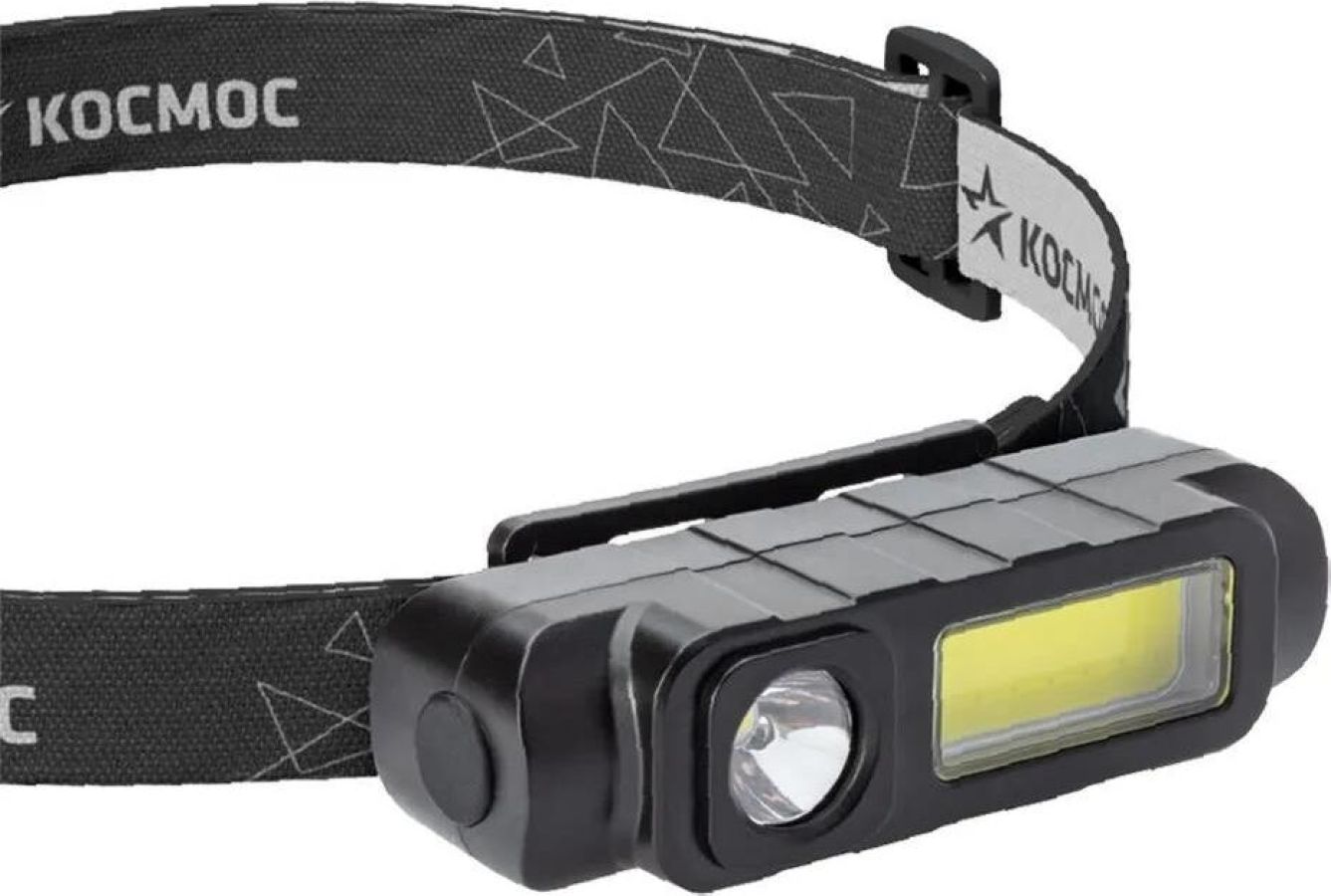 Фонарь налобный КОСМОС (KOC510Lit) - два света по цене одного. Недорогая модель объединяет в себе функции фонаря-луча и широкий свет в одном корпусе. Ценовой лидер в линейке аккумуляторных фонарей с двумя источниками света. Для дополнительной яркости освещения - используйте режим фонаря, когда оба источника света работают одновременно. Источник света: луч 1Вт LED; широкий свет 3Вт COB LED; Источник питания: Li-ion аккумулятор 18650 3,7В 800 мА/ч (встроенный), зарядный USB-шнур в комплекте; Количество режимов: 4 (луч яркий, луч мигающий/широкий свет яркий/луч+широкий свет одновременно); Световой поток: 90 лм. (луч)/180 лм. (широкий свет); Дистанция освещения: 35 м. (луч)/22 м2 (широкий свет); Корпус: ABS-пластик; IP54; Размер: 9.3x2.6x3.8 см.; Налобный регулируемый эластичный ремешок