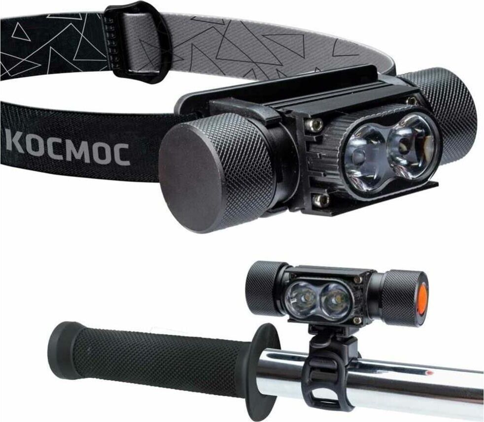 Уникальный металлический фонарь КОСМОС (KOS501Lit) 2в1 (налобный/велосипедный) в прочном корпусе из анодированного алюминия авиационного класса. Крепление отсоединяется в один клик, превращая фару велосипеда в налобный фонарь. Защищен от дождя и пыли, ударопрочный корпус. Сменный литиевый аккумулятор популярного типоразмера 18650. Мощный луч фонаря – светит вперед, направленный свет. Коллиматорная линза максимально эффективно фокусирует свет. Лидер по режимам – 5 разных форм света: яркий, средний, мигающий, а также отдельно левый и правый источник света. Источник света: 10 Вт LED — 2x5Вт (с коллиматорными линзами — позволяют создать поток света нужной направленности без снижения интенсивности); Источник питания: съемный Li-ion аккумулятор 18650 3,7В 1200 мА/ч (входит в комплект), зарядный USB-шнур в комплекте; Количество режимов: 5 (яркий 5Вт правый — яркий 5Вт левый — яркий 2x5Вт — экономичный 2x5Вт — мигающий); Световой поток: 500 лм.; Дистанция освещения: 280 м.; Корпус: анодир