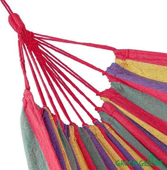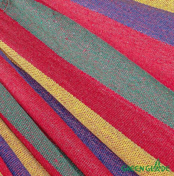 Подвесной гамак Green Glade – это гарантия отличного времяпровождения на свежем воздухе. В тканевом гамаке можно уютно расположиться с любимой книгой в руках, спрятаться от жары в тени деревьев и подремать. А яркая расцветка поспособствуют отличному летнему настроению. • Размер: 200х150 см • Вес нетто: 1,5 кг • Материал: поликоттон 320 г/м2 с веревкой из поликоттона 50 см с каждой стороны • Комплектация: чехол • Размер индивидуальной упаковки: 28х18х15 см • Количество в коробке: 16 штук • Размер коробки: 62х40х58 см • Вес брутто: 25 кг • Производитель: Green Glade • Страна: Китай