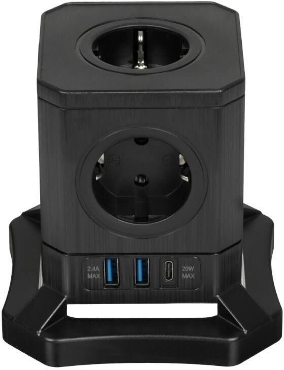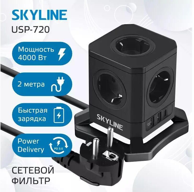 Сетевой фильтр с 2xUSB+1xType-C портами; Розетки 5 шт.; Длина кабеля 2 метра; Цвет черный; Максимальная мощность 4000W (16A); 2xUSB, 1xType-C (Максимальная суммарная сила тока: 3 А), поддержка QC/PD; Защитные шторки, Защита от перегрузки и короткого замыкания; Стильный лаконичный дизайн; Огнеупорный пластик; Питание AC 220-250V 50Hz.