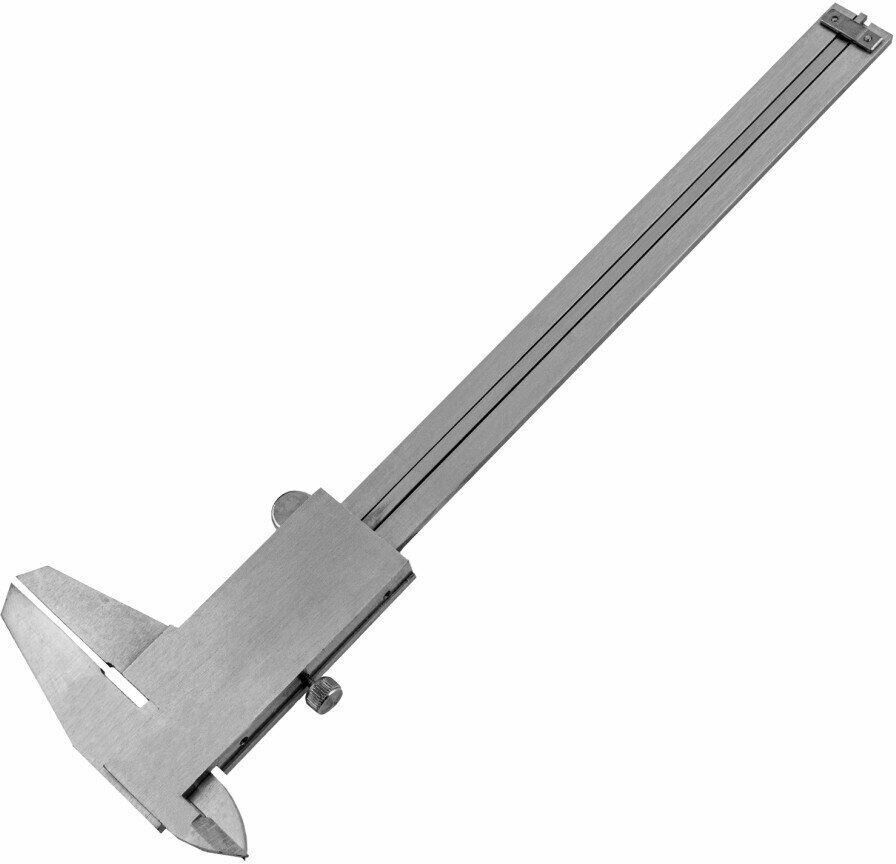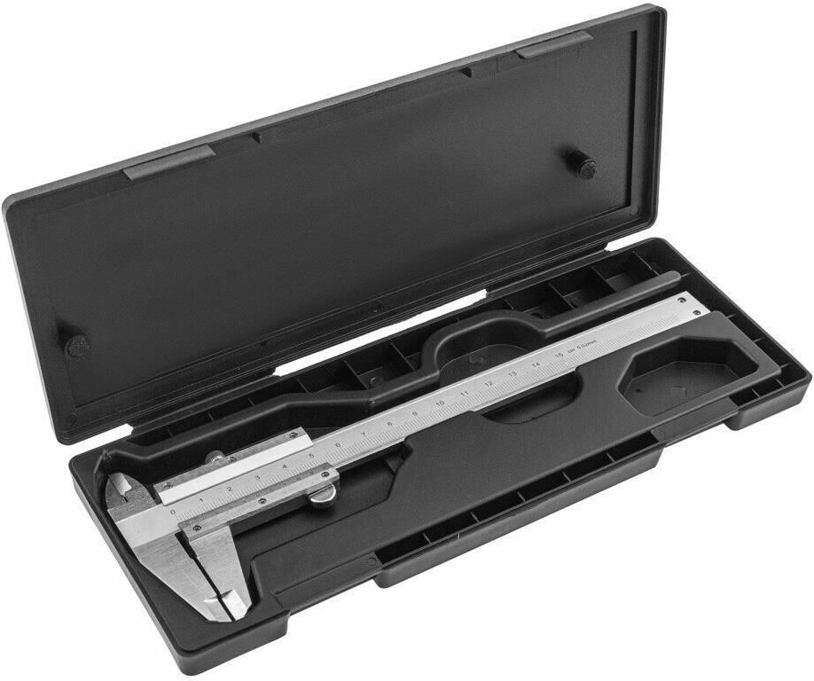 Металлический штангенциркуль с глубиномером Matrix 316315, 150 мм, со значением отсчета по нониусу 0,02 мм, используется для быстрого определения размеров внутри и снаружи деталей, а также глубин отверстий и канавок — для этого предусмотрен глубиномер. Погрешность составляет ±0,02 мм при измерении размеров до 100 мм, и ±0,03 мм — свыше 100 мм. Измерительный инструмент используется в токарном, слесарном деле, будет полезен на производственном предприятии, а также дома или в гараже.ПреимуществаНадежность — штангенциркуль изготовлен из углеродистой стали, устойчивой к механическим воздействиям.Точное позиционирование губок — зажимной винт позволяет зафиксировать подвижную рамку, чтобы она не сместилась во время измерения.Удобное хранение и транспортировка — штангенциркуль упакован в прочный пластиковый кейс.
