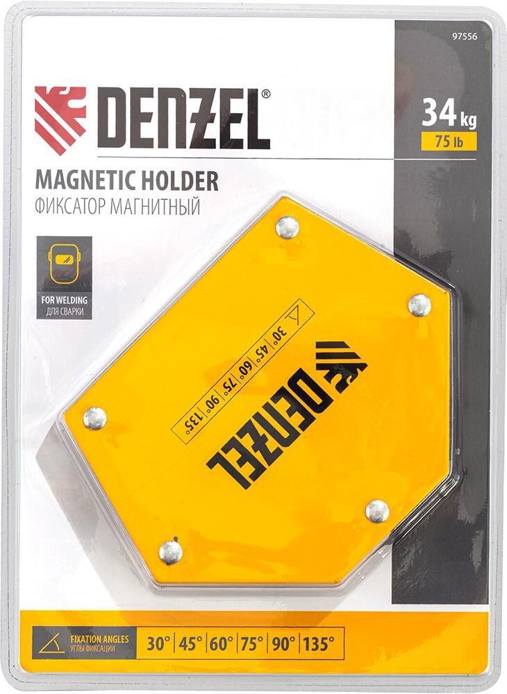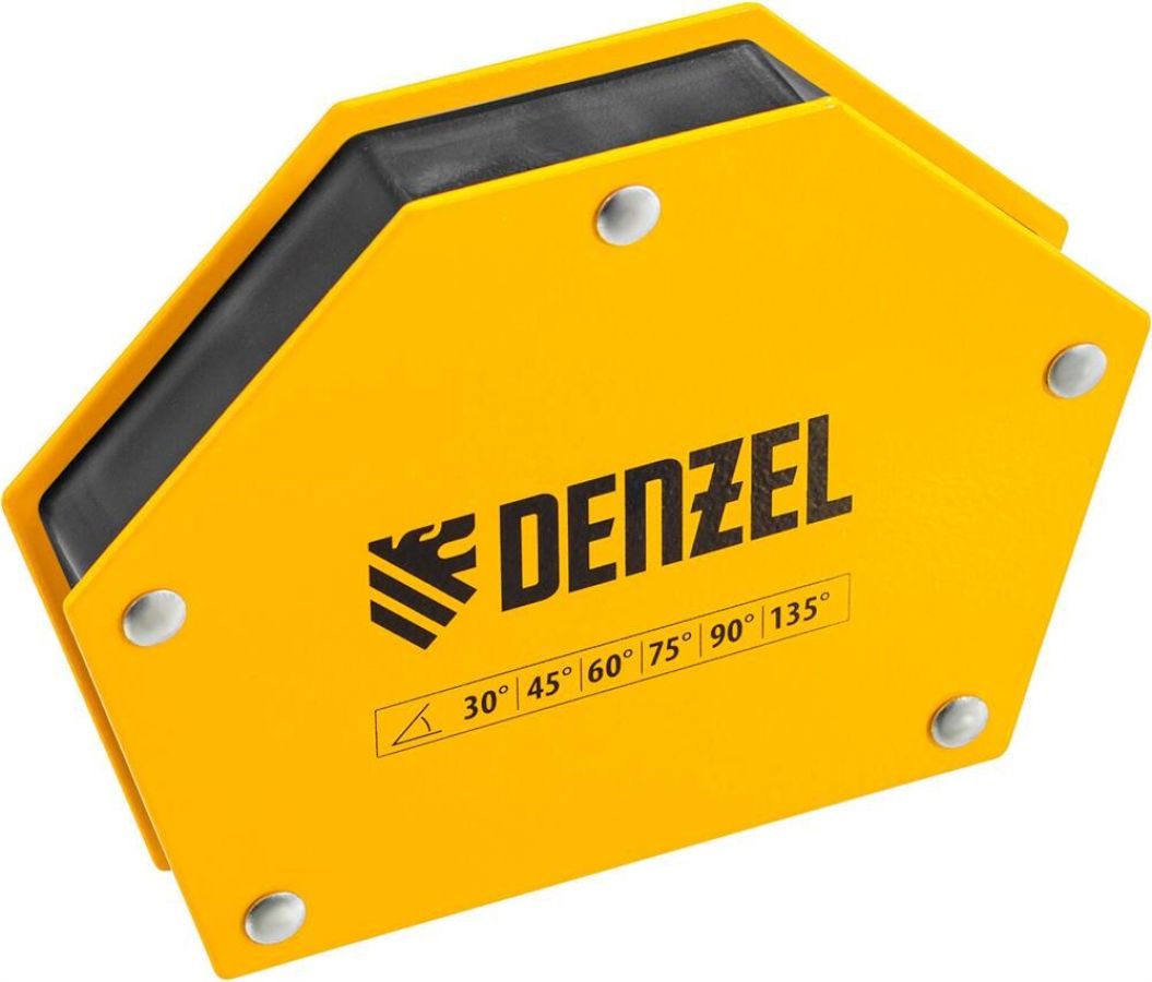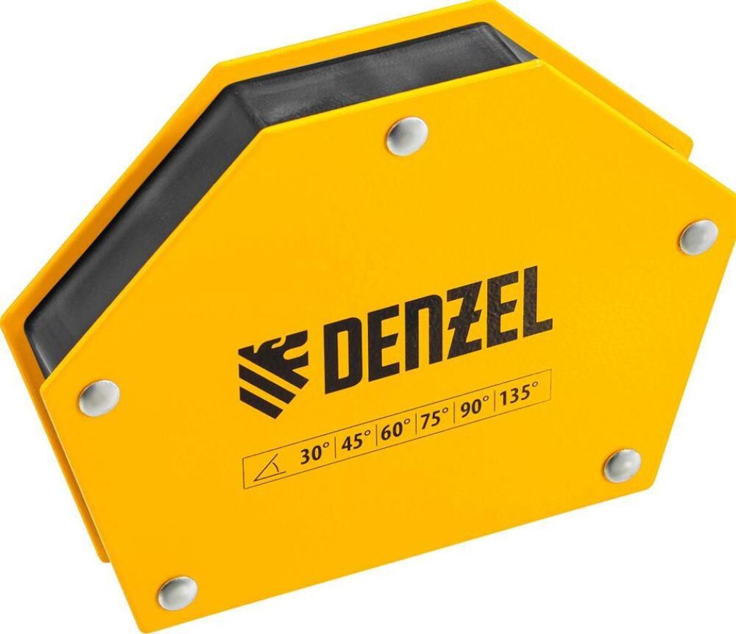 Фиксатор магнитный Denzel 97556 выдерживает усилие 75 LB (34 кг), позволяет соединять металлические детали разного размера под углом 30°, 45°, 60°, 75°, 90° и 135° и используется при проведении сварочных работ.