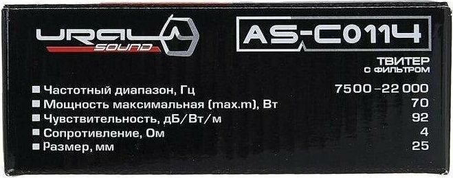Тип Твитеры (высокочастотные динамики «пищалки») Размер 1,85 дюйма (4,7 см) Диапазон частот 7500 - 22000 Гц Максимальная мощность 70 Вт Сопротивление, Ом 4 Чувствительность, дБ 92 Акустическая система имеет встроенный фильтр первого порядка (конденсатор), данная система превосходно дополнит верхний диапазон частот в вашем автомобиле и позволит полноценно насладиться музыкальным произведением, преимущественно с наличием инструментала. В магнитной системе используется ферро магнитная жидкость для охлаждения. В комплекте 2 шт.