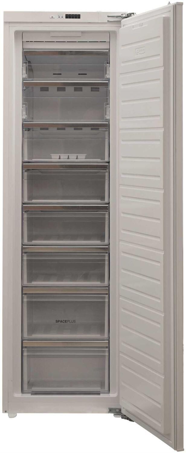 Встраиваемая морозильная камера, Электронное управление, Класс энергопотребления: А+, Система автоматической разморозки NoFrost, Режим «Супер заморозка», LED освещение камеры, Ящик увеличенного размера SpacePlus, Жесткое крепление двери, Перенавешиваемая дверь, Объем морозильного отделения: 197 л, Габаритные размеры (в/ш/г), 1770х540х545 мм