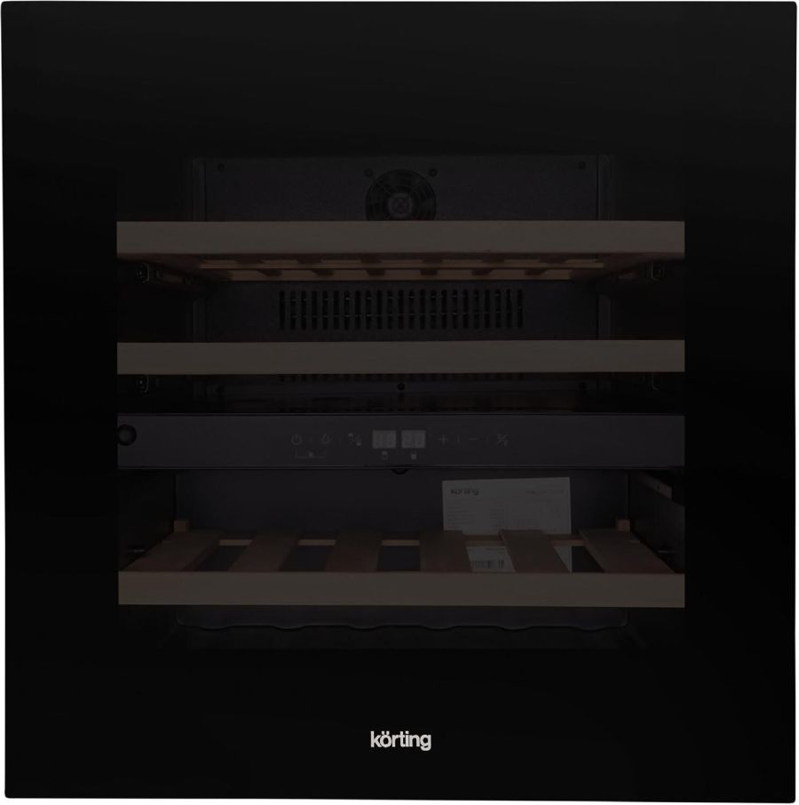 Винный шкаф; Открытие дверцы сенсорной кнопкой. Внутреннее сенсорное управление. Полезный объем - 85 л. Максимальная вместимость - 30 бутылок. 2 независимые температурные зоны. Температурный диапазон: Нижняя зона: 5°C - 22°C, Верхняя зона: 5°C - 22°C. 3 деревянные полки. Вентилятор для равномерного распределения температуры. LED освещение. Класс энергопотребления A. Уровень шума - 41 дБ. Габариты прибора (ВхШхГ) – 595 х 590 х 563 мм. Цвет - черное стекло.