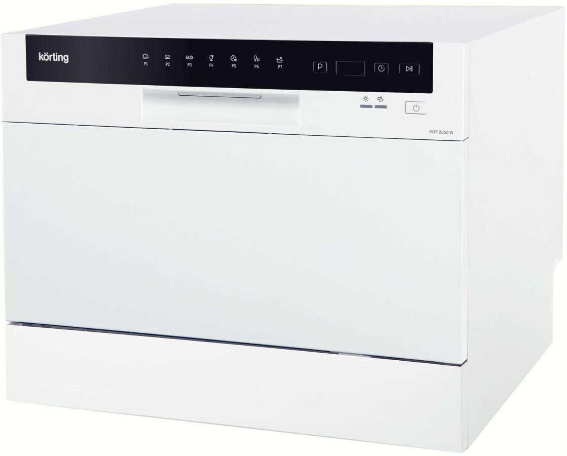 Компактная посудомоечная машина; Габариты (ВxШхГ): 43,8x55х50 см; Электронное управление; Цифровой дисплей с отображением выбранной программы; LED индикаторы; 7 программ; 6 комплектов; Таймер отложенного старта 1-24 часов; Защита от протечек; Программа самоочистки; Возможность подключения к горячей воде; Уровень шума: 49 дБ; Цвет: белый; Класс энергопотребления: А+; Класс мойки: A; Класс сушки: A