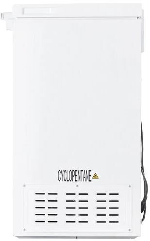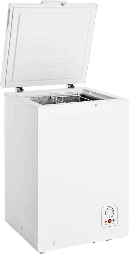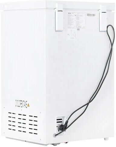(ВхШхГ)85,4х54,6х47,9см. Цвет белый.Общий объем, л95.Размораживание ручное.Поддержание температуры при отключении электроэнергии, ч 14.Мощность замораживания, кг/24 ч 4.8.Сигнализация о превышении температуры.Тип сигнализации световой сигнал (красная лампочка).Замок.Корзина 1.Количество компрессоров 1.Класс энергопотребления A+.Расход электроэнергии, кВтч/год 209.Уровень шума, дб (А) 40.