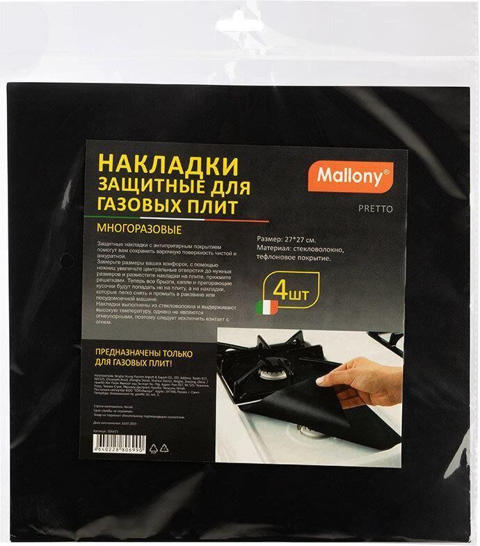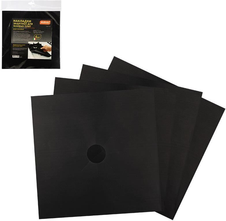 Защитные накладки с антипригарным покрытием помогут вам сохранить варочную поверхность чистой и аккуратной. Замерьте размеры ваших конфорок, с помощью ножниц увеличьте центральные отверстия до нужных размеров и разместите накладки на плите, прижмите решетками. Теперь все брызги, капли и пригорающие кусочки будут попадать не на плиту, а на накладки, которые легко снять и промыть в раковине или посудомоечной машине. Накладки выполнены из стекловолокна и выдерживают высокую температуру, однако не являются огнеупорными, поэтому следует исключить контакт с огнем. Предназначены только для газовых плит 4 шт в наборе Размер: 27*27 см Толщина: 0,1мм Вес 1 шт : 12 гр Материал: стекловолокно, тефлоновое покрытие