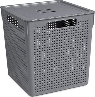 Корзина предназначена для хранения мелочей в ванной, на кухне, на даче или в гараже. Данное изделие позволит хранить мелкие вещи, исключая возможность их потери. Для удобства переноски данный продукт оснащен двумя ручками. Стенки корзины имитированы под плетение, за счет этого обеспечивается естественная вентиляция. Вес 0.5 кг. Размеры изделия (ДхШхВ) 350х290х225 мм.