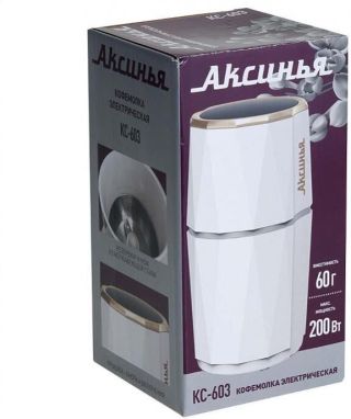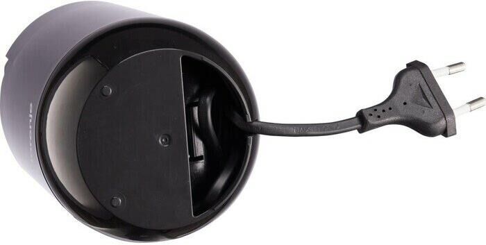 Материал корпуса пластик. Материал помольной чаши нержавеющая сталь. Нож ротационный. Объем загрузки, гр. 45. Мощность подключения, Вт 150. Смотка кабеля Да .Длина присоединительного кабеля, м 0.7. Защита от перегрева Да. Система отключения при перегрузке Да .Ножки резиновые.