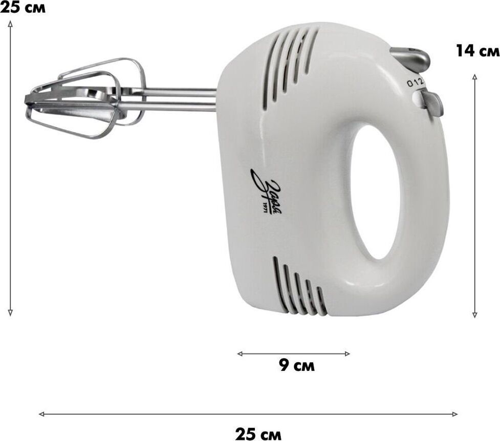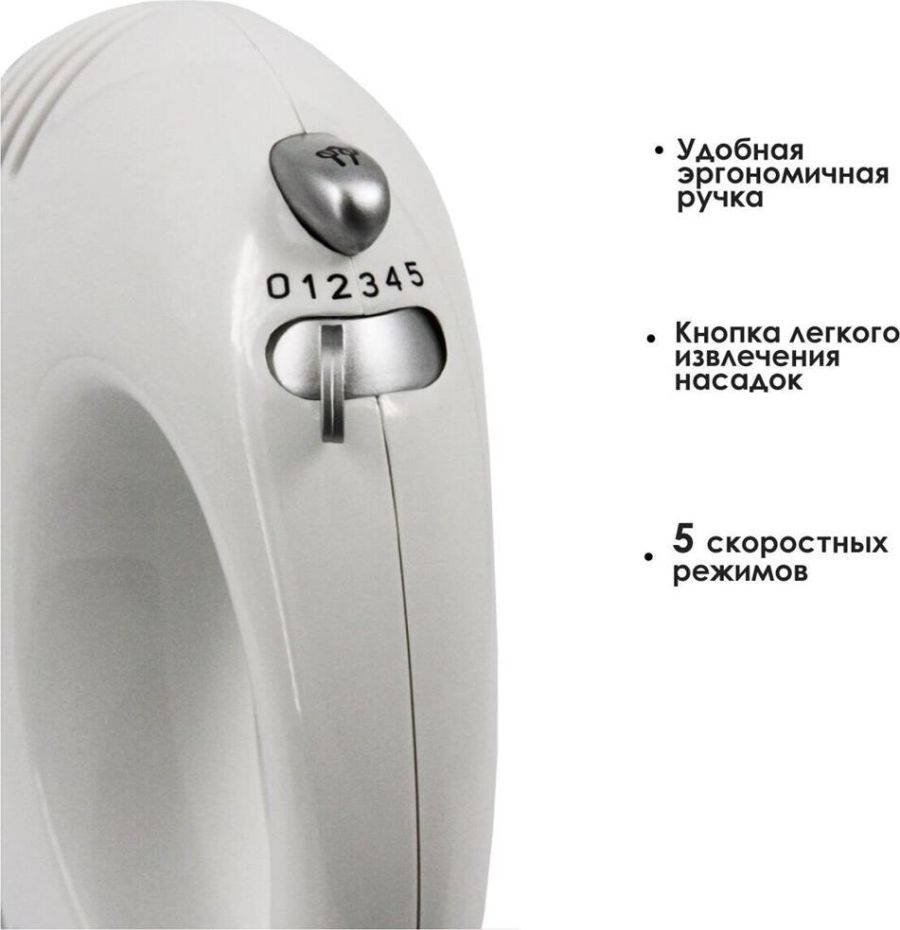 312-01 Миксер электрический Мощность 200 Вт Два комплекта хромированных насадок Кнопка легкого извлечения насадок Пять скоростей 230 B ~ 50 Гц