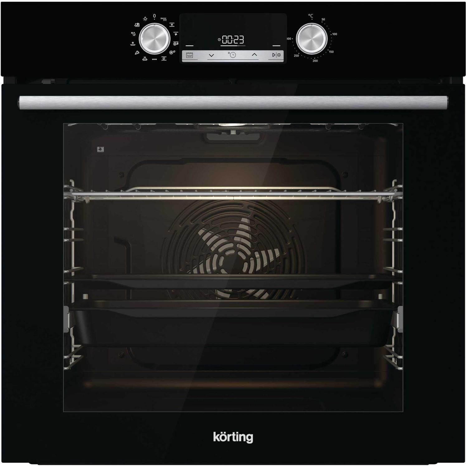 Духовой шкаф с сенсорным управлением VISION LED, панель управления - стекло, LED дисплей белого цвета, 12 режимов, утапливаемые поворотные регуляторы, объем духовки 77 л, двухслойное остекление, очистка камеры Steam cleaning, приготовление с паром Steam Extra, режим быстрого нагрева, функция "Гратен", автоматическое отключение, одноуровневые телескопические направляющие, эмаль легкой очистки, в комплекте: глубокий противень, универсальный противень и хромированная решетка, цвет: черное стекло