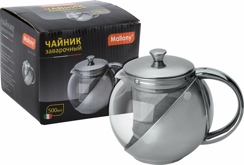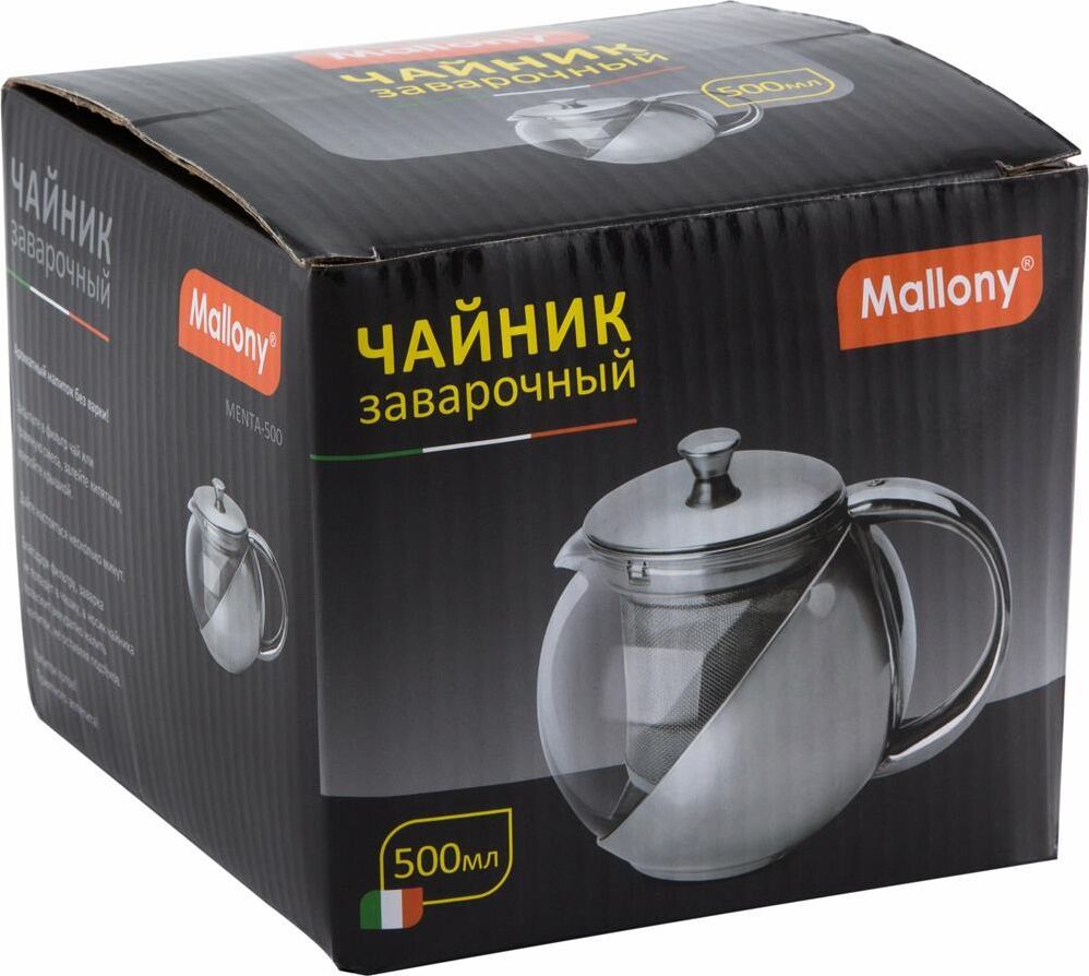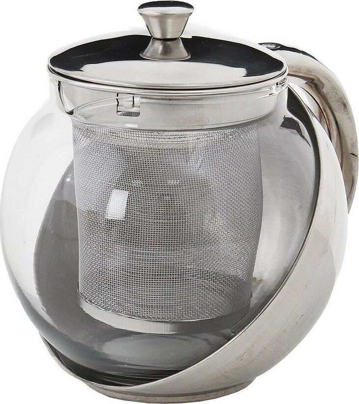 Чайник заварочный Выполнен из нержавеющей стали и жаропрочного стекла Фильтр из нержавеющей стали Объем — 500 мл 4~11.5×10-6 — коэффициент линейного расширения Упаковка — пузырчатая пленка/цветная коробка